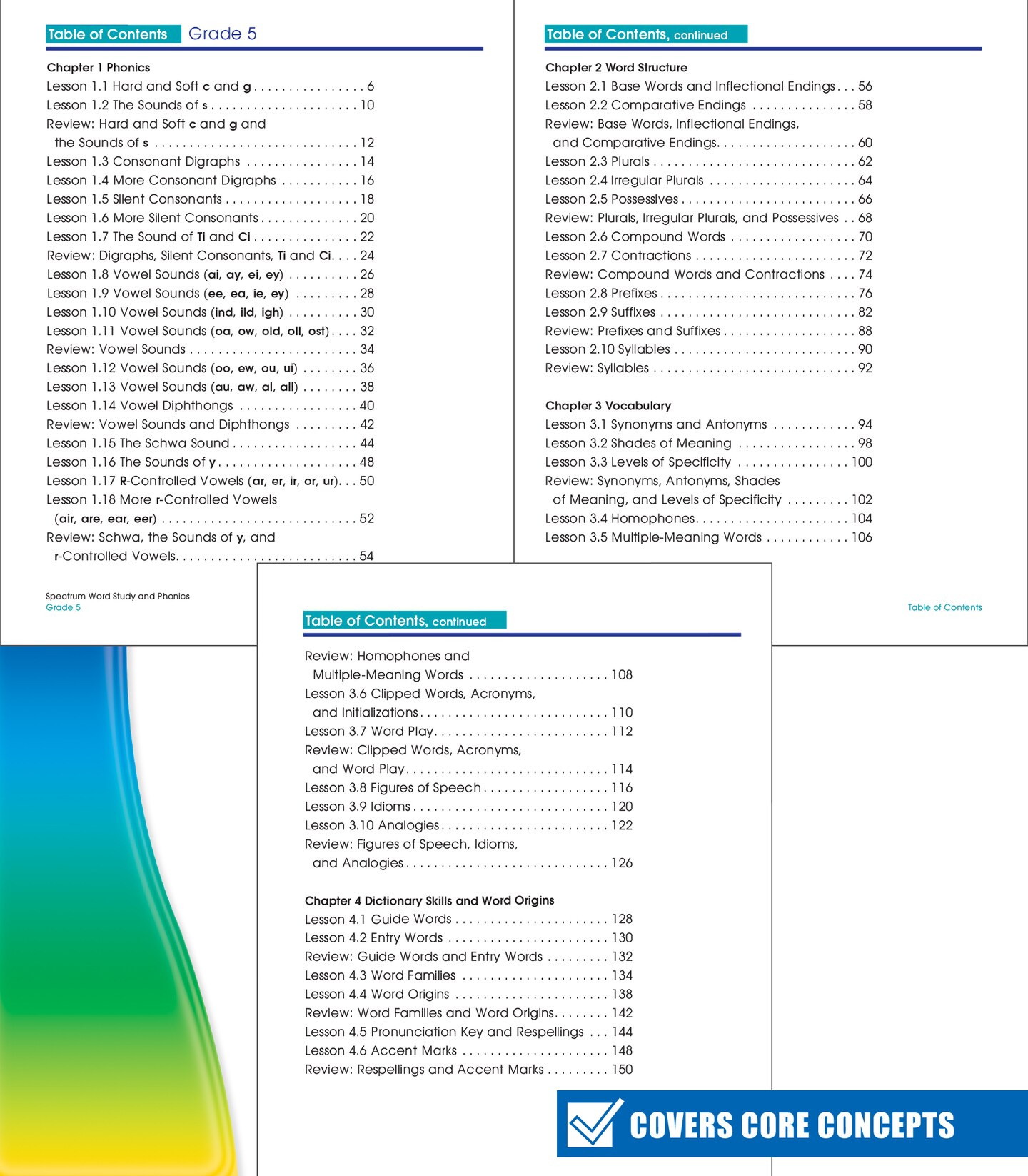 Spectrum Grade 5 Word Study and Phonics Workbook, Language Arts Book Covering Vocabulary, Dictionary Skills, Spelling, Digraphs, and More, ELA Classroom or Homeschool Curriculum