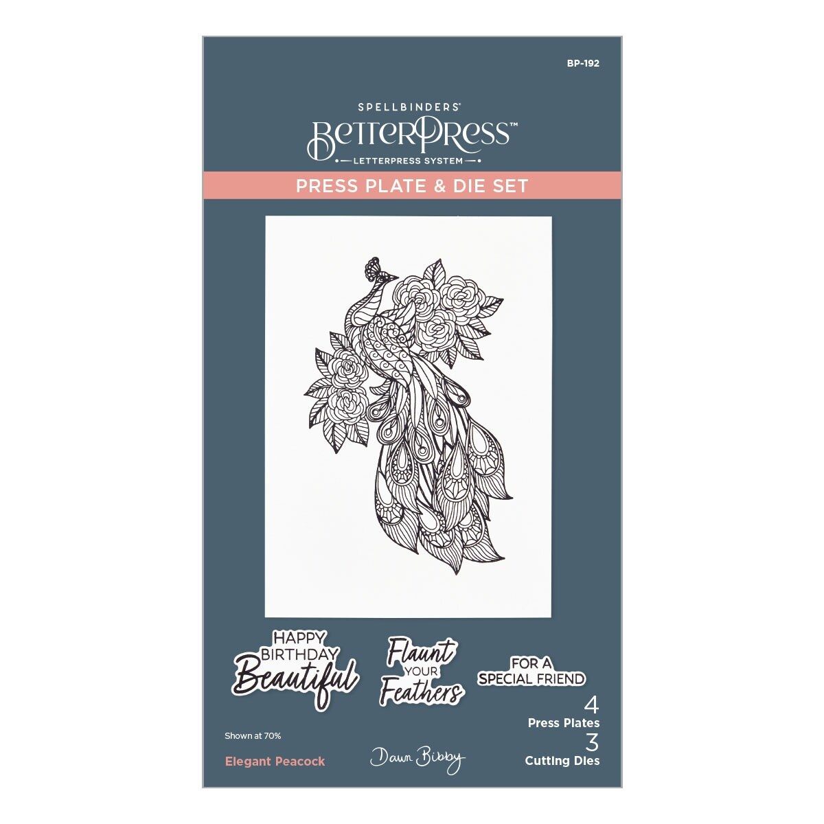 Spellbinders BetterPress Press Plate & Die Set By Dawn Bibby-Elegant Peacock