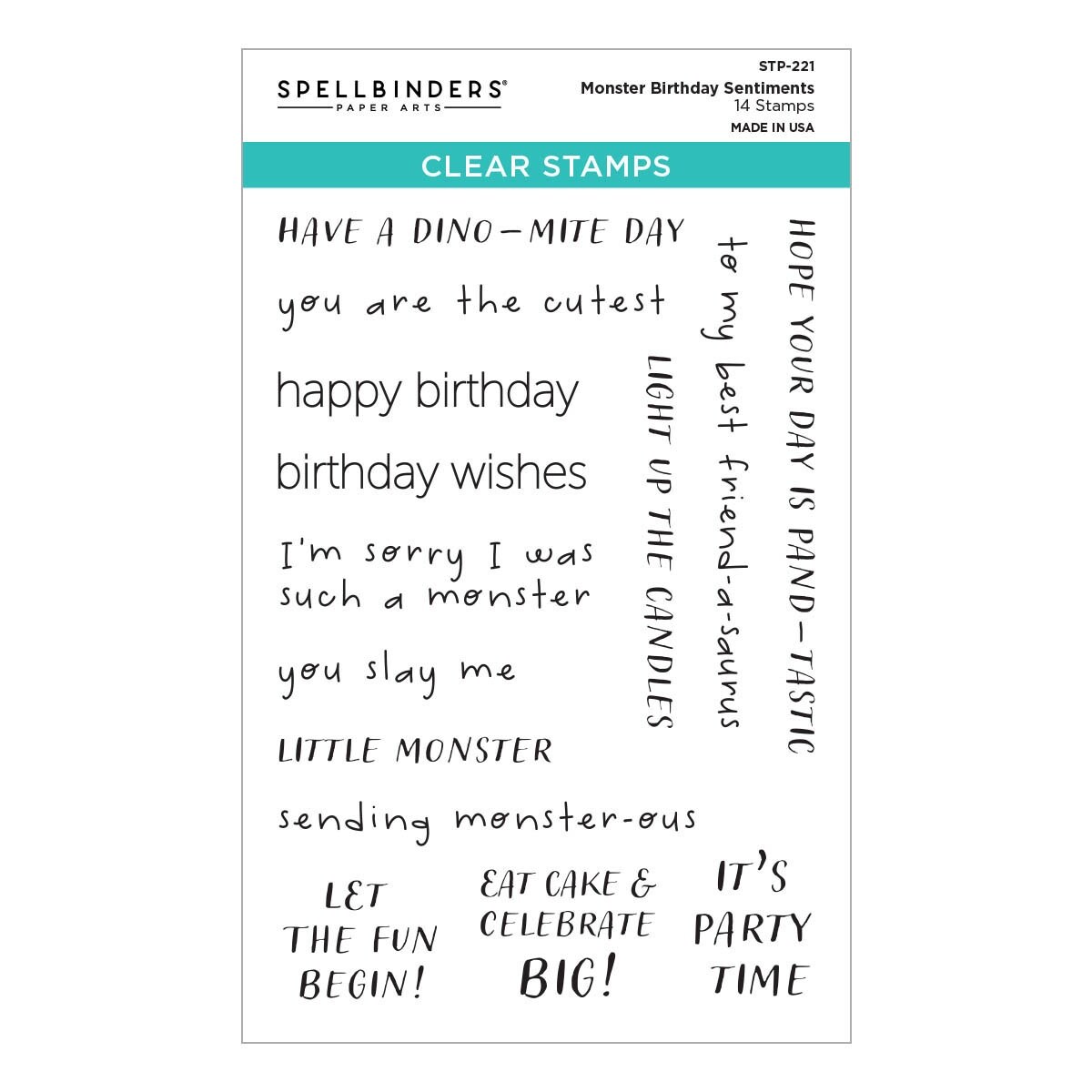 Spellbinders Clear Stamp Set From The Monster Birthday Colle-Monster Birthday Sentiments