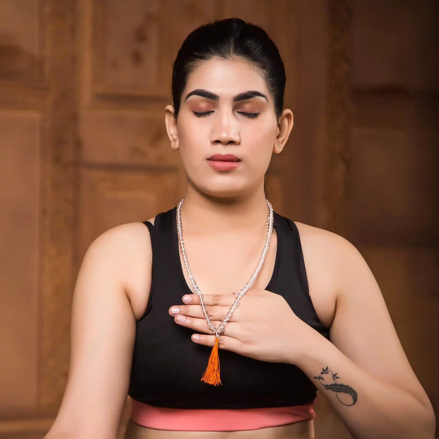 Sphatik Mala with Jap Bag Gaumukhi Natural Certified Original Crystal Quartz Agate Necklace Precious Gemstone Mala for Men Women Jaap Mala 108 Beads for Positive Energy Meditation