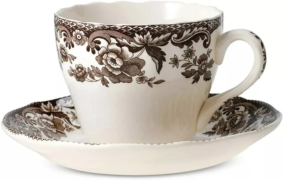 Spode Delamere Collection 7 oz. Teacup and Saucer, Fine Earthenware - Set of 4