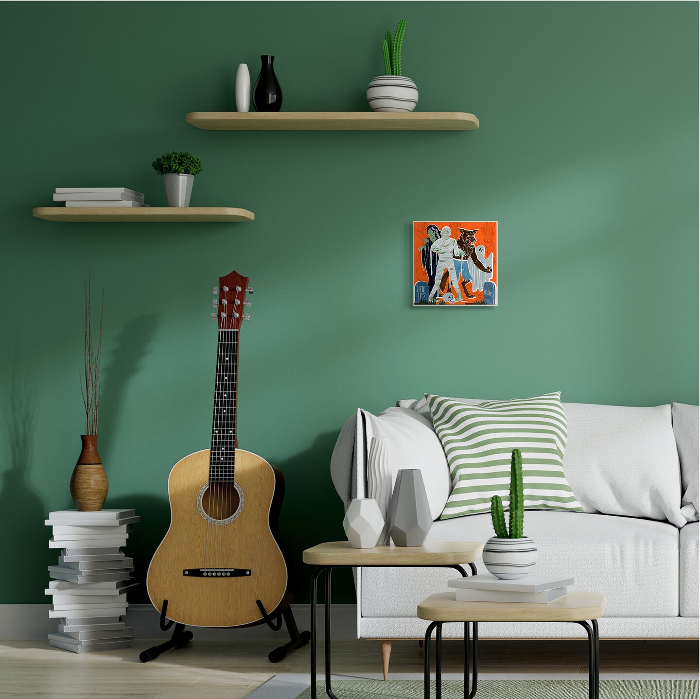 Spooky Halloween Monsters Orange Graveyard Ghost Wall Plaque Art