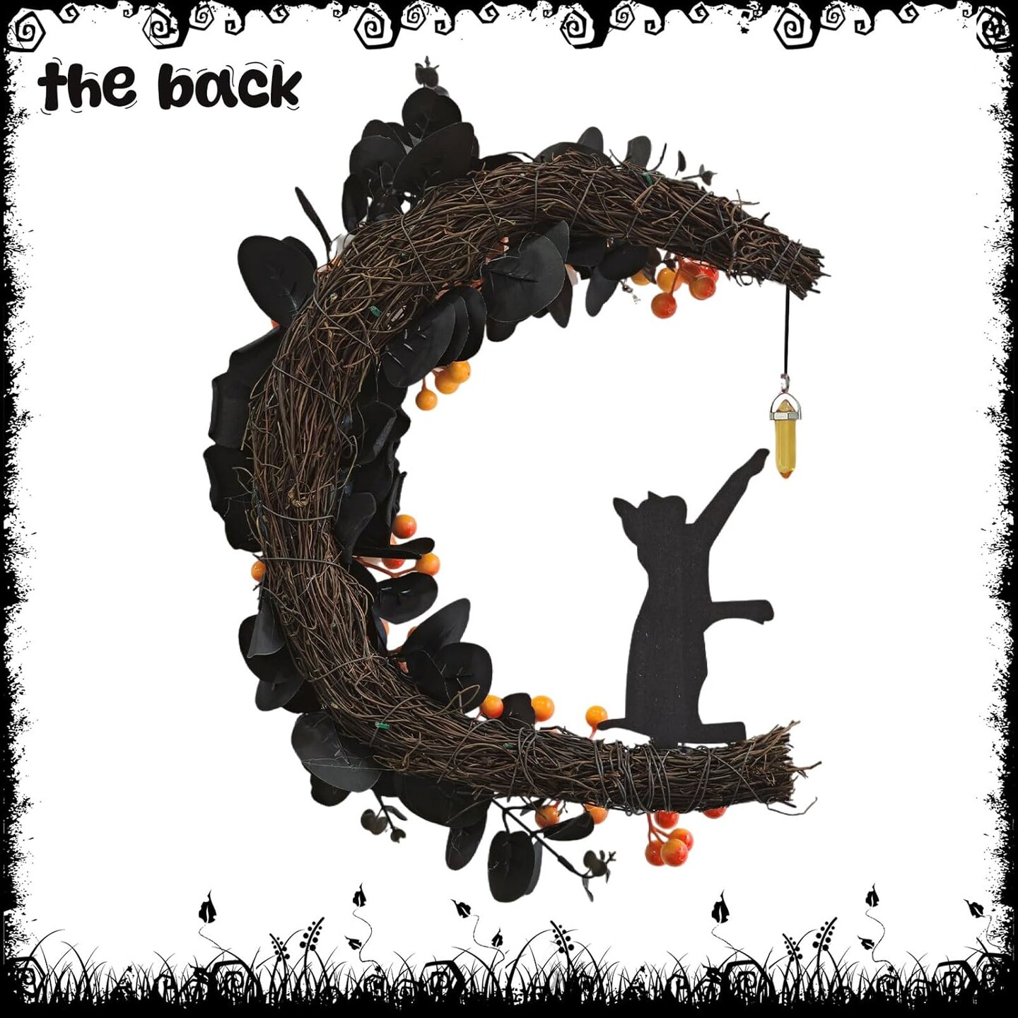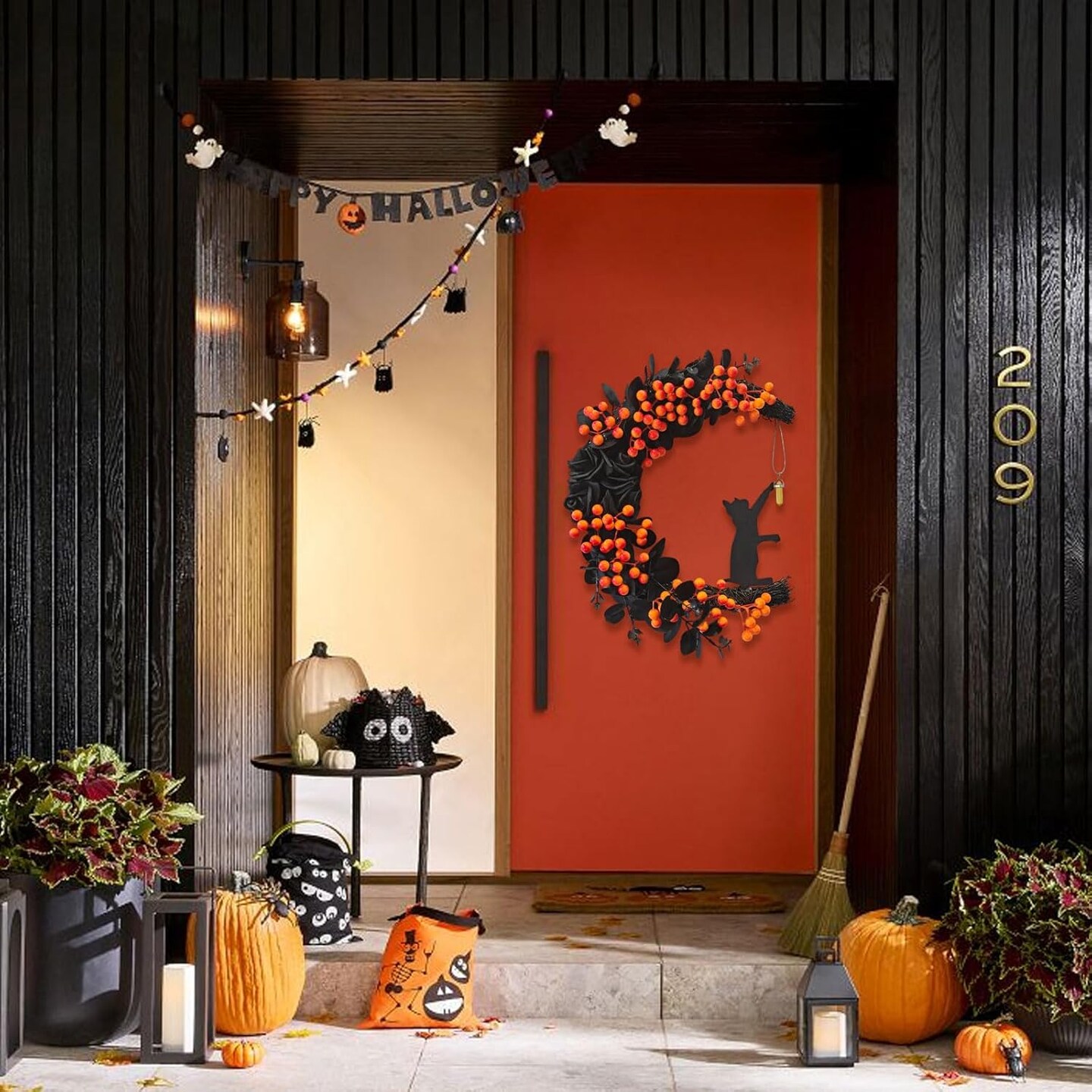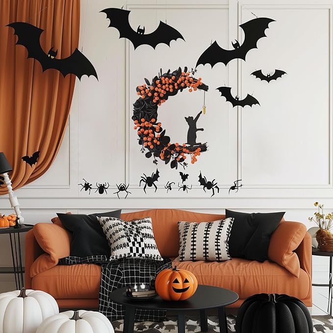 Spooky Halloween Wreath - 2026 New Black Cat Moon Door Decor with Lights for Indoor Outdoor Party Wall, Unique Crescent Moon Wreath Design, Perfect Halloween Decorations for Front Door