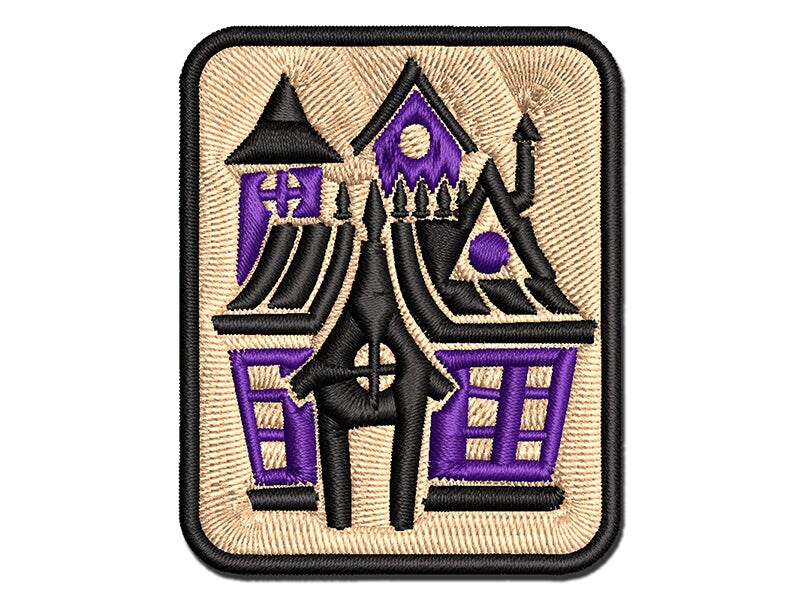 Spooky Scary Haunted House Mansion with Bats Broken Windows Multi-Color Embroidered Iron-On or Hook & Loop Patch Applique