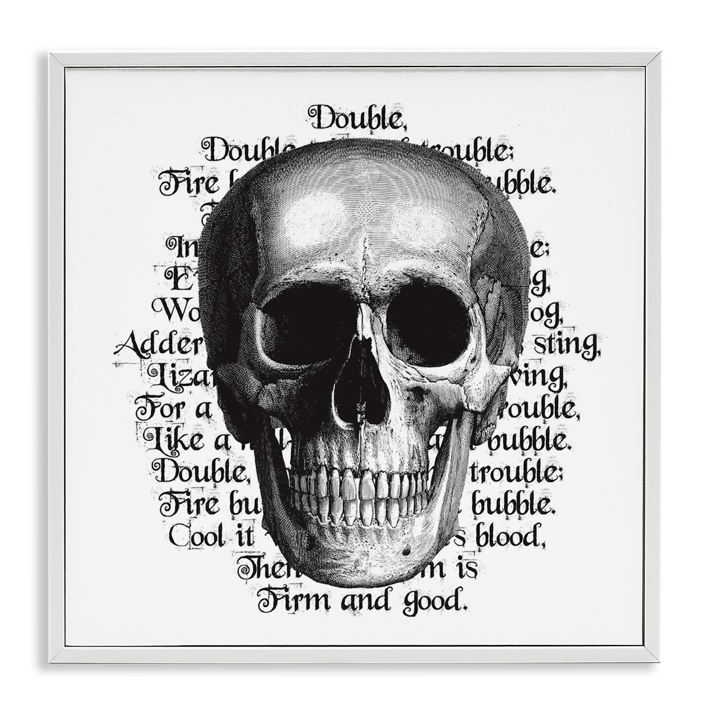 Spooky Skull Layered Vintage Script Hex Text Framed Giclee Art