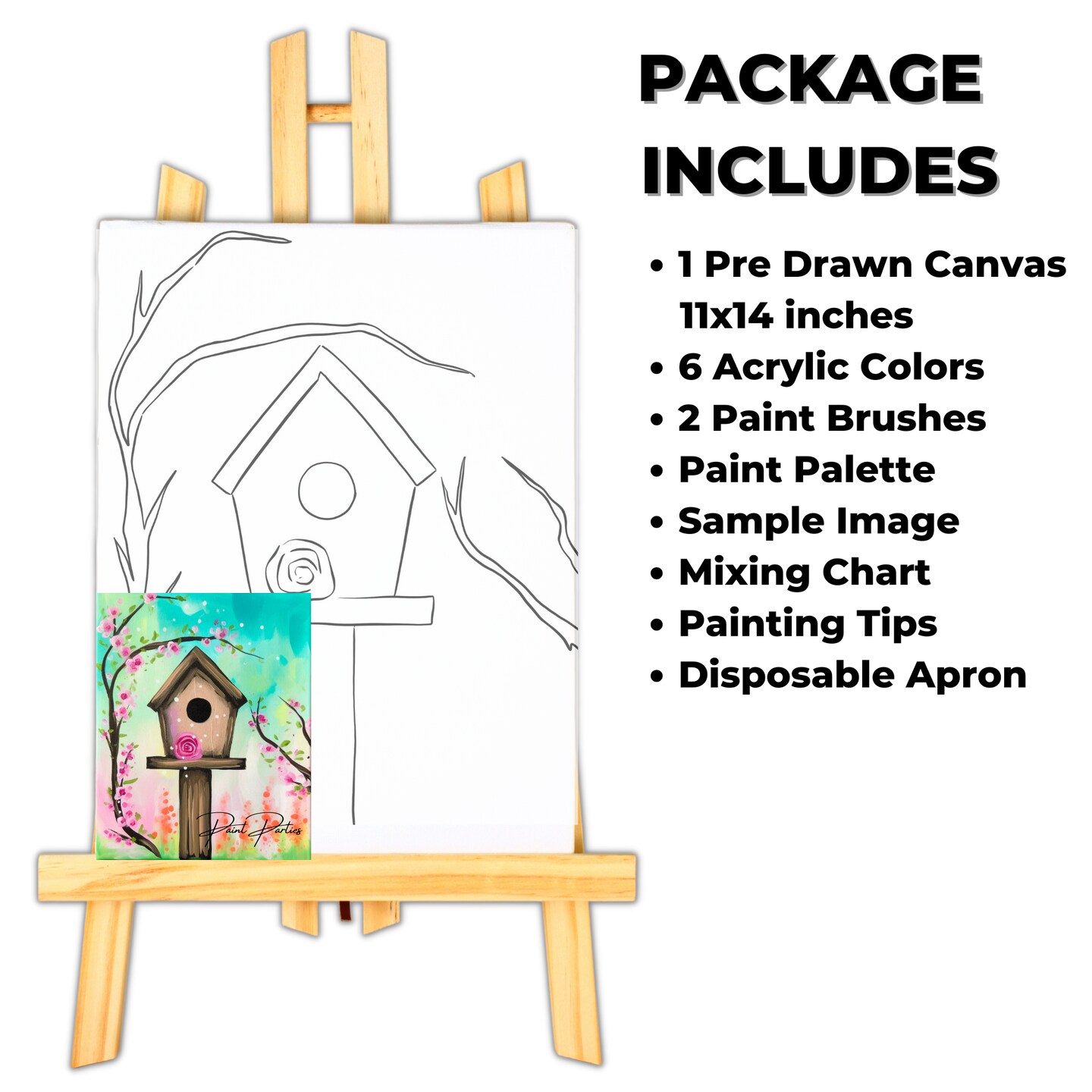 "Spring Birdhouse" DIY Canvas Art Kit, Adult Beginner, Acrylic Paint Size 11x14 inch