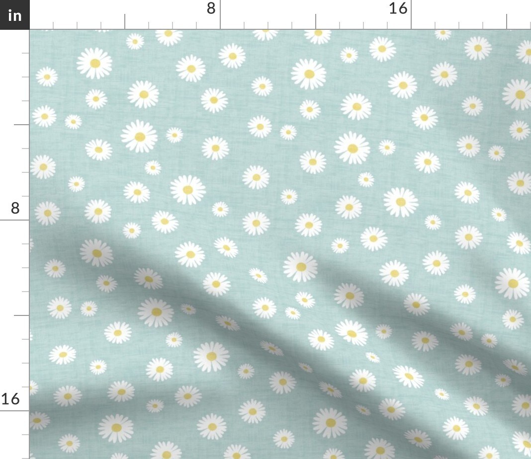 Spring Daisy Dainty Floral Baby Girl Modern Mint Botanical Garden Bloom Meadow Wildflower Custom Printed Fabric by Spoonflower Various Fabrics by the Yard or Fat Quarter