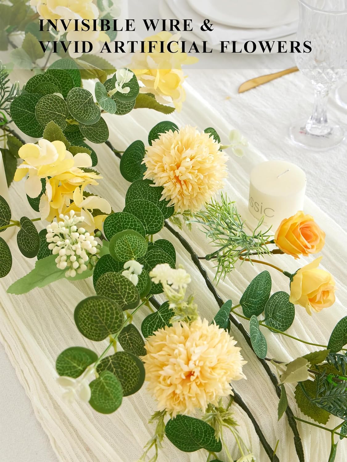 Spring Floral Garlands – 5.9 Ft Artificial Eucalyptus Garland with Flowers for Mantle, Table Centerpiece, Baby Shower, Wedding, and Spring Décor