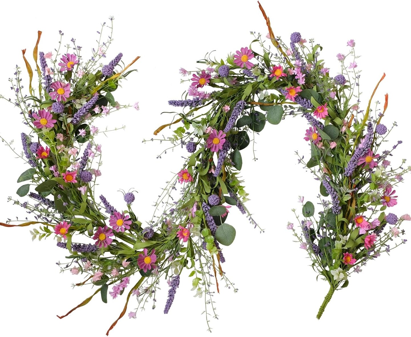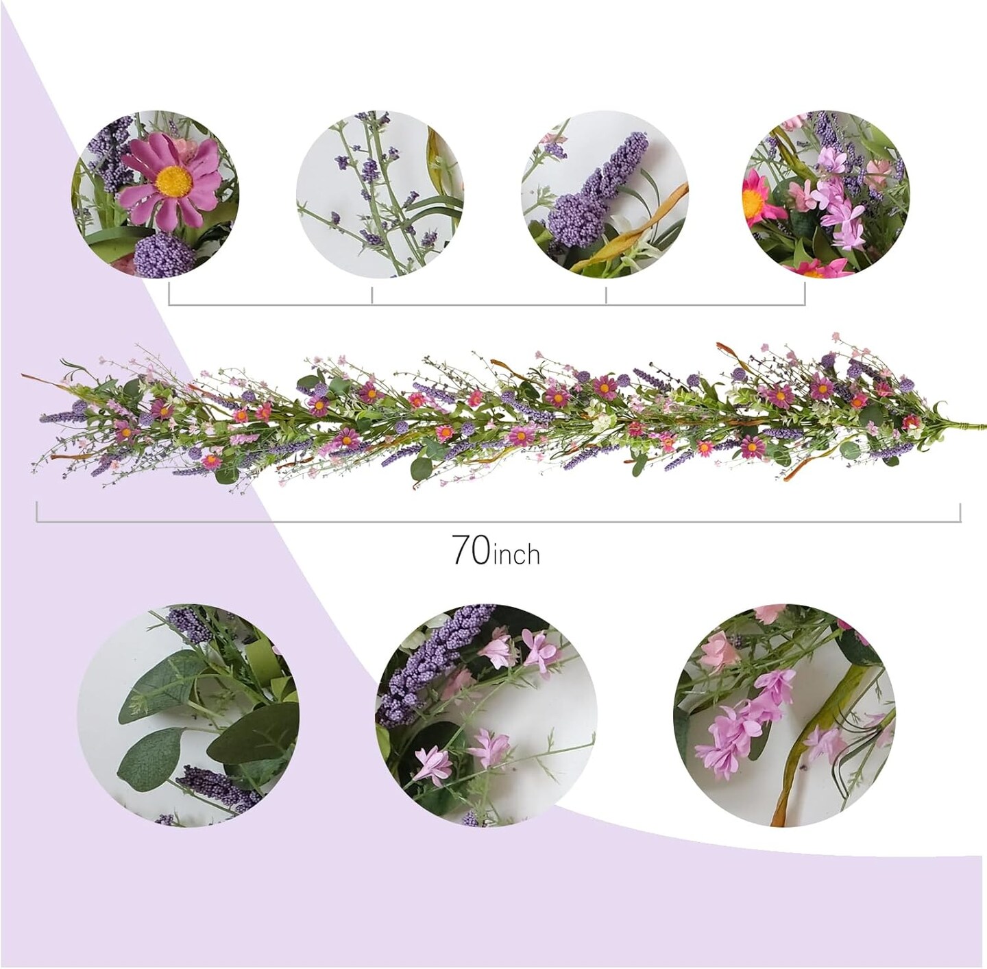 Spring Floral Garlands – 70inch/5.9Ft Artificial Flower Garland with Daisies & Lavender, Fake Greenery Vine for Baby Shower, Wedding, Mantle, Party, Table Centerpiece, All Season Decor