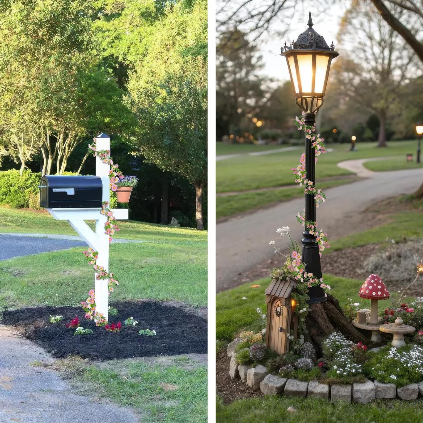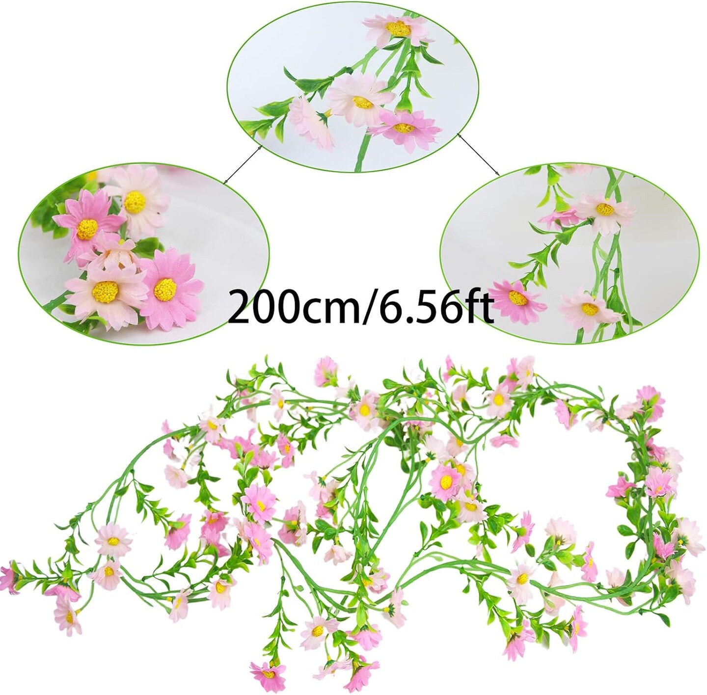 Spring Floral Garlands – Artificial Daisy Flower Vine, Silk Wildflower Garland with Light Pink Daisies & Green Leaves, Hanging Floral Vine for Wall, Wedding Arch, Party Decor Indoor & Outdoor