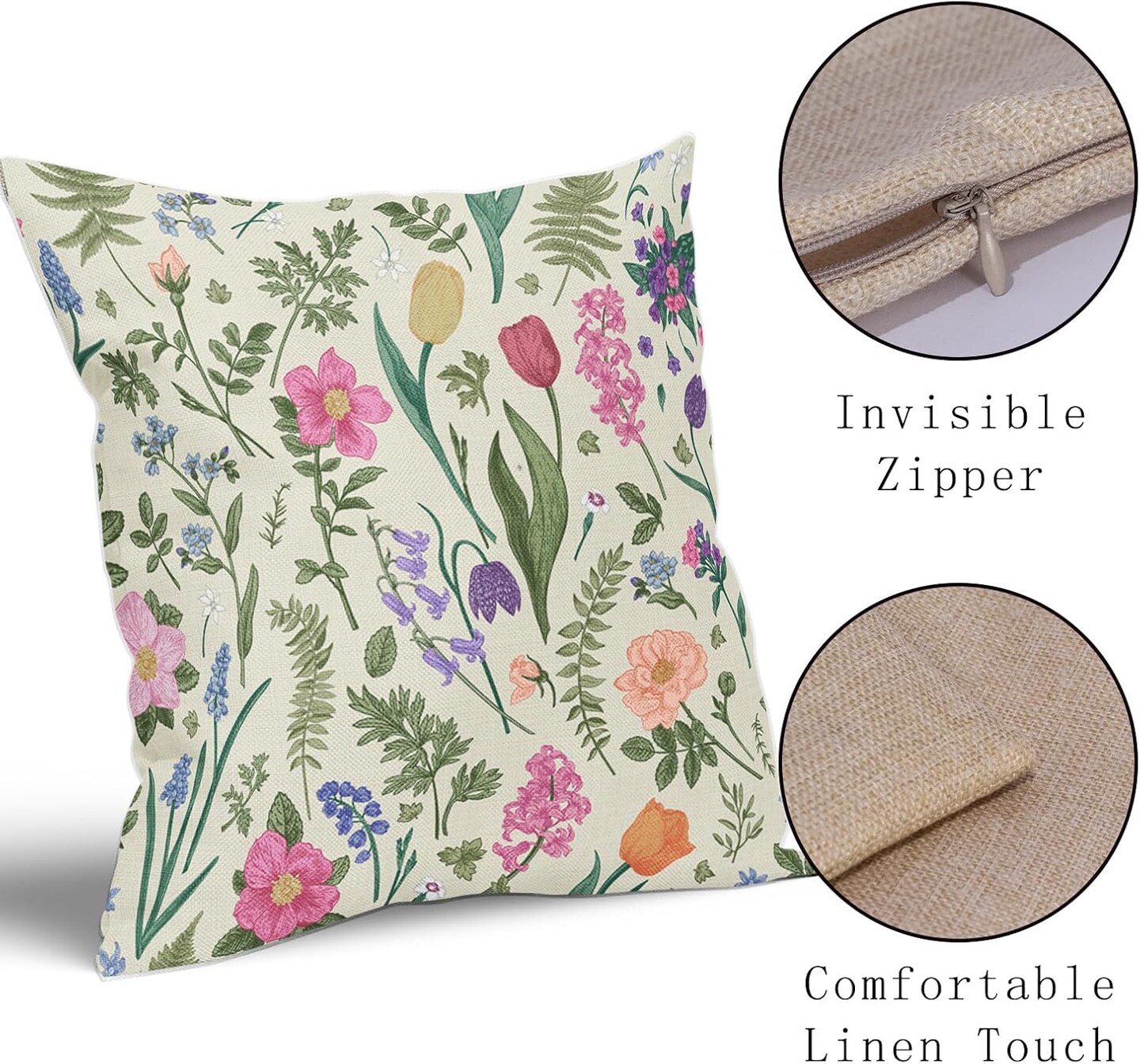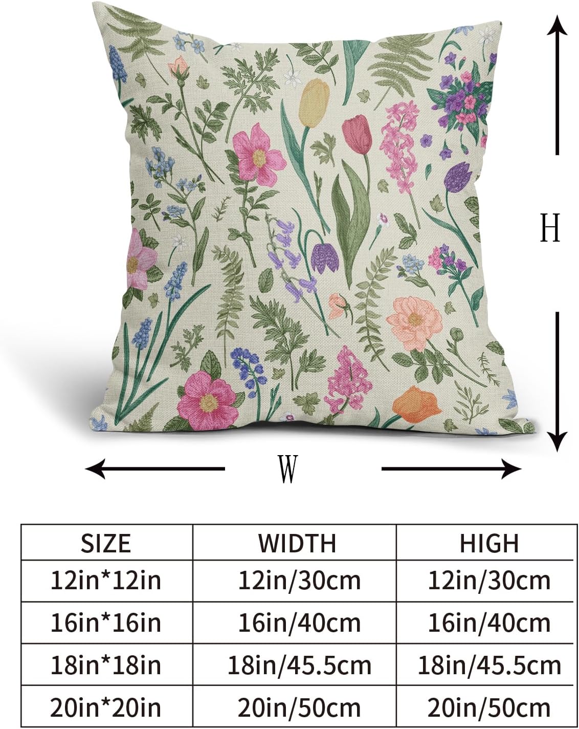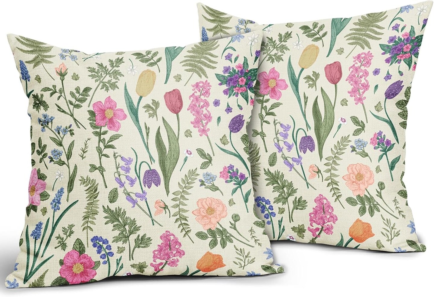 Spring Floral Pillow Covers 18x18 Inch Set of 2 Watercolor Pink Flowers Sage Green Leaves Vintage Botanical Plants Print Decorative Throw Pillows Seasonal Pillow Cases Couch Bed Sofa Decor