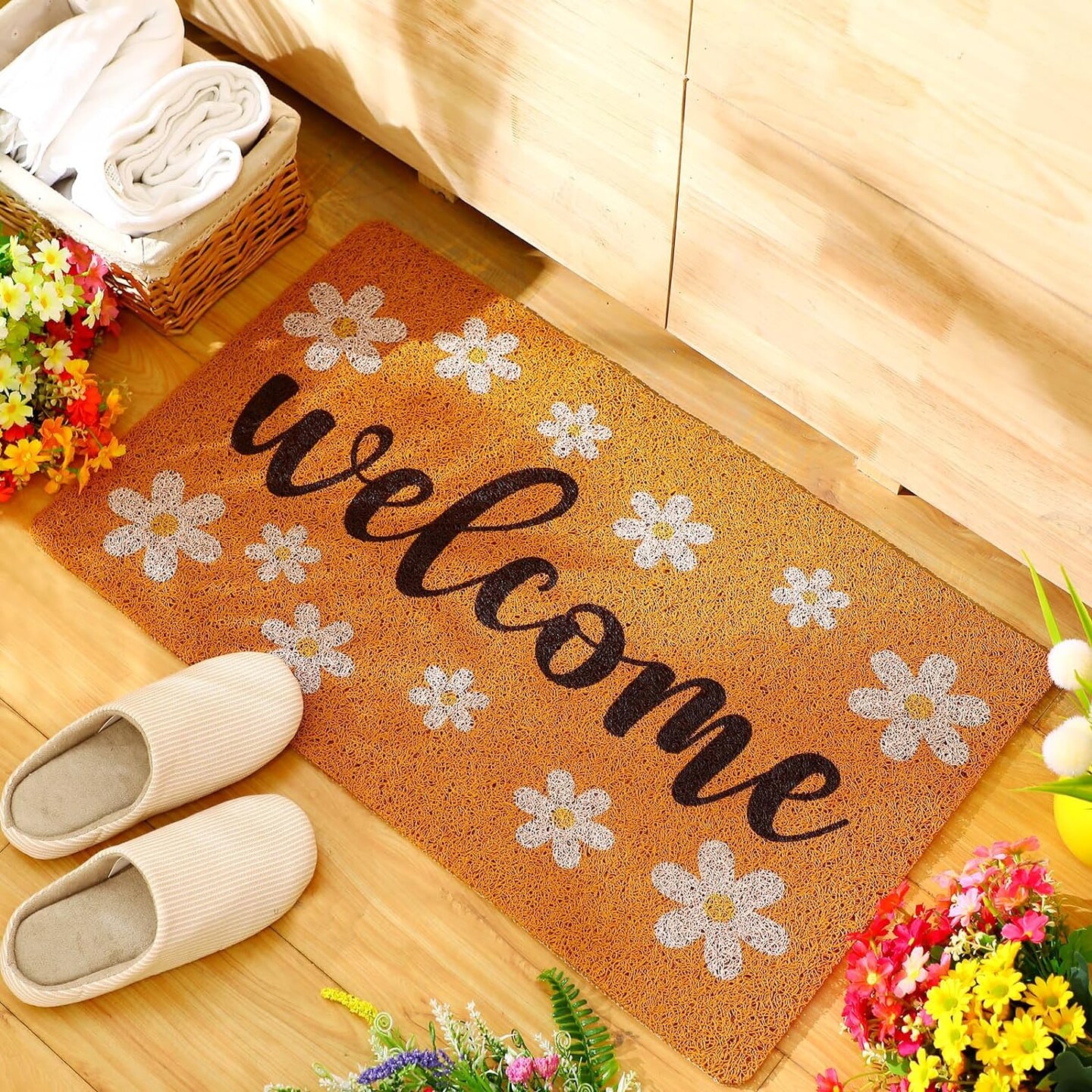 Spring Floral Welcome: Doormat and Wreath Set for a Cheerful Home Entrance