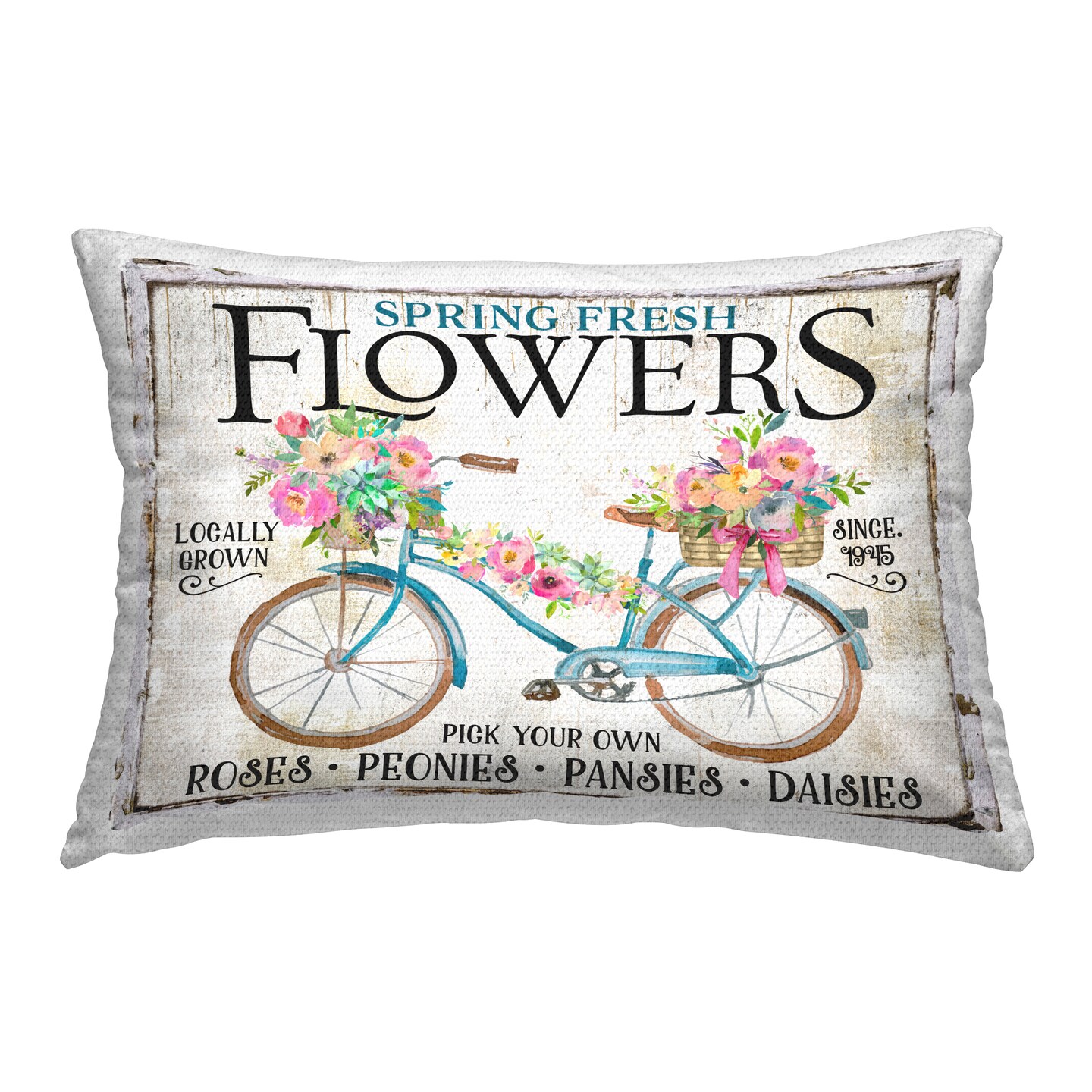 Spring Fresh Flowers & Bike Outdoor Printed Pillow Design by Creatif Belle, 14 x 7 x 20