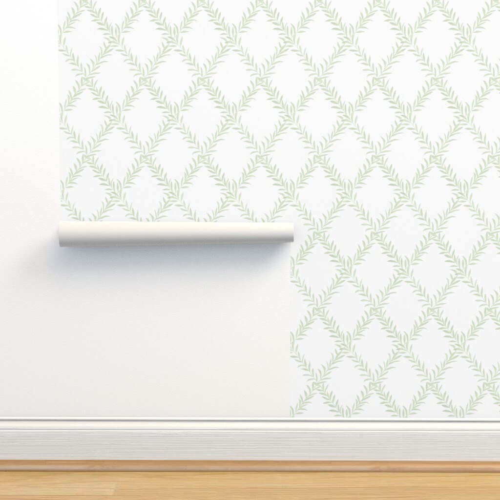 Spring Garden Leaf Vine Green White Custom Pre-pasted Wallpaper by Spoonflower Pre-Pasted Wallpaper 2FT Wide