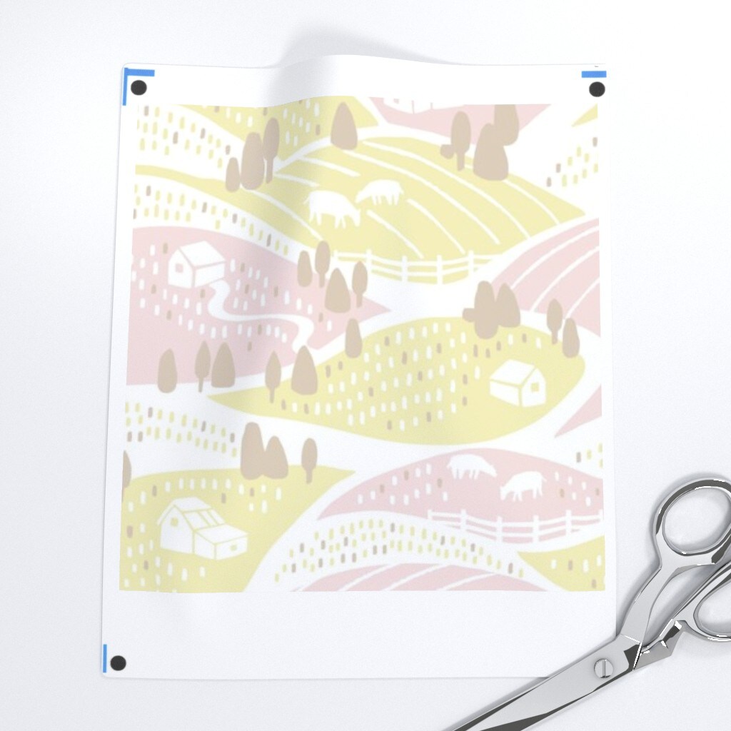 Spring Landscape Pastel Pink Yellow Feminine Cheerful Playful Delicate Romantic Custom Printed Fabric by Spoonflower Various Fabrics by the Yard or Fat Quarter