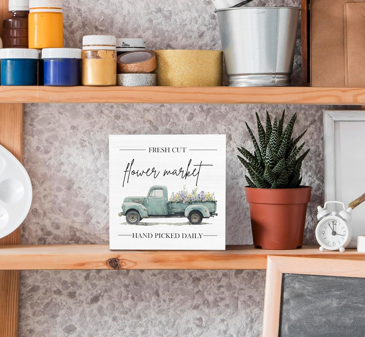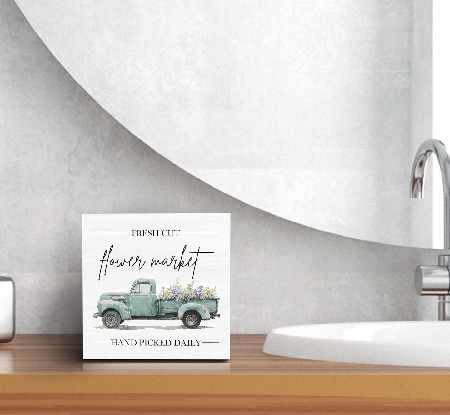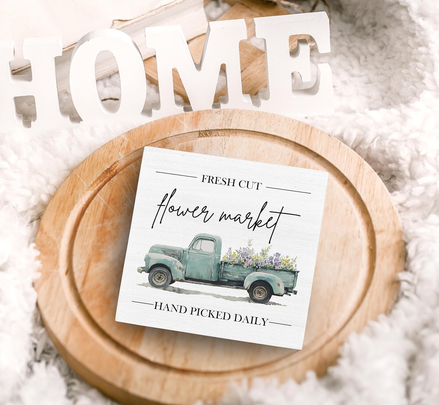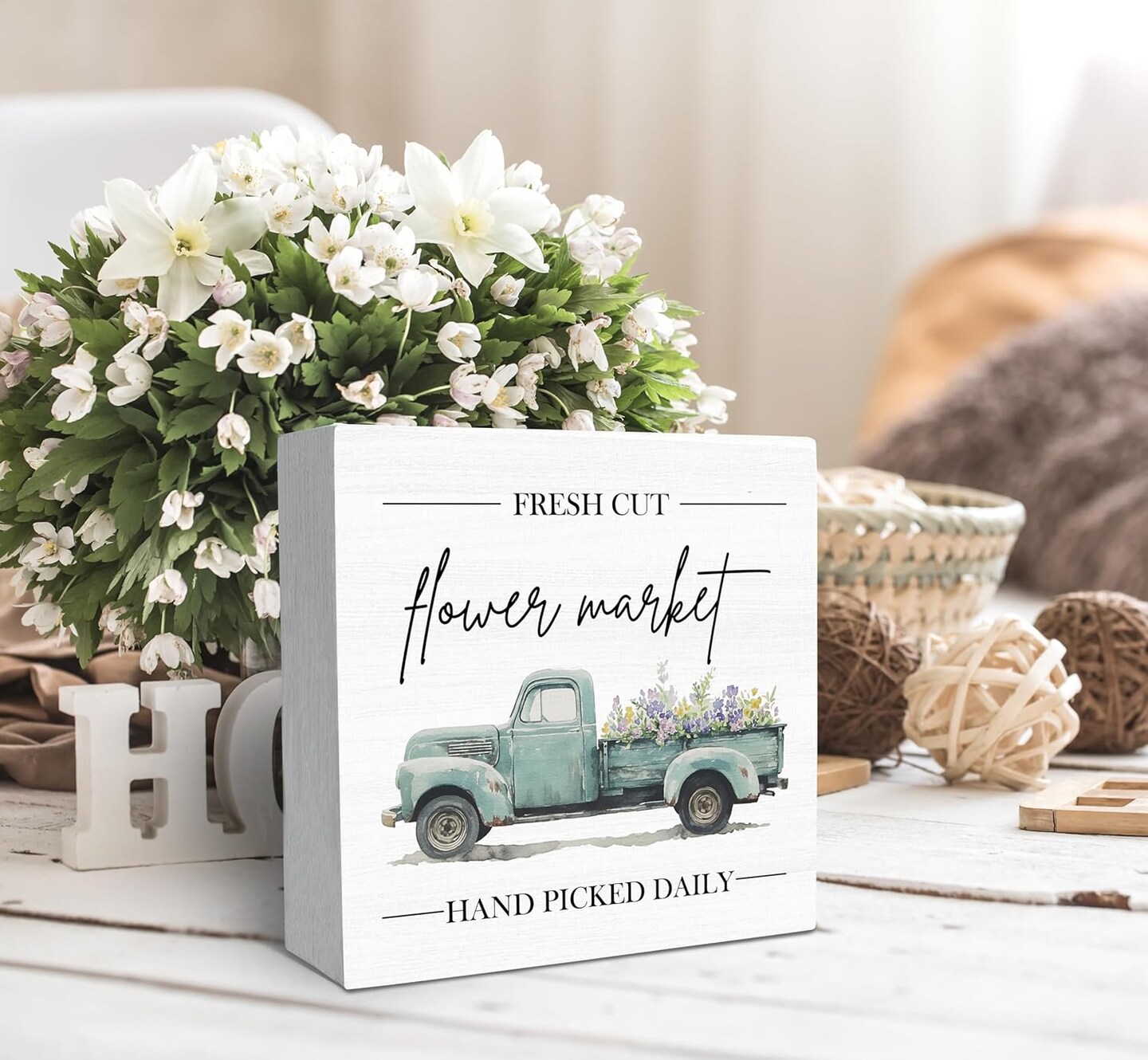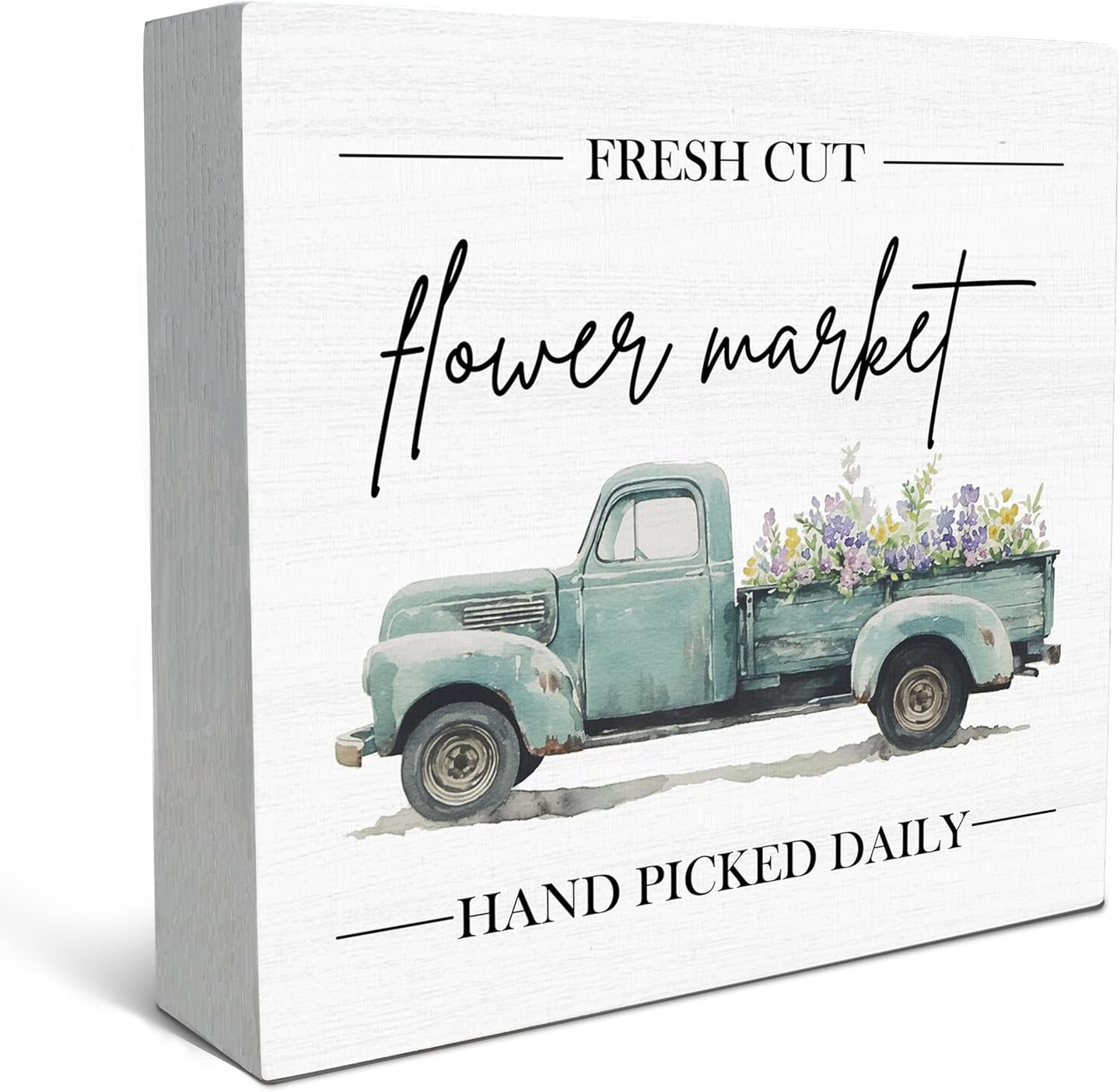 Spring Sign, Flower Market Spring Tabletop Wood Box Sign Desk Decor, Spring Signs for Home Decor, Farmhouse Spring Theme Wooden Block Box Sign Decoration