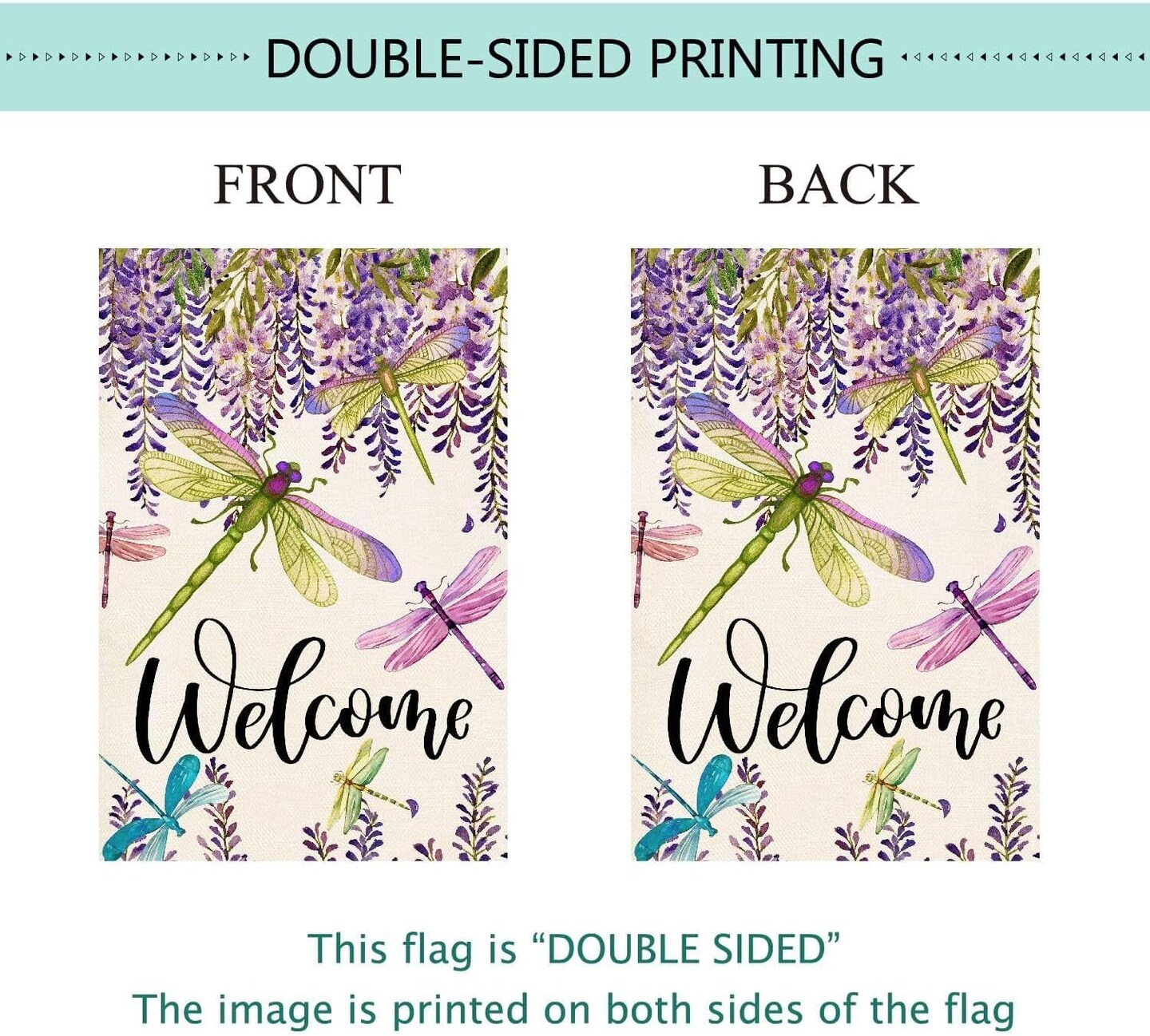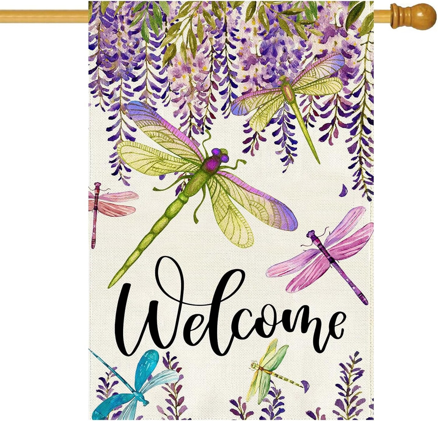 Spring Summer Flower House Flag Wisteria Dragonfly Floral Welcome House Flag Burlap Double Sided Vertical Seasonal Farmhouse Wedding Yard Outdoor Decoration 28 x 40 Inch (Large)