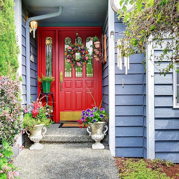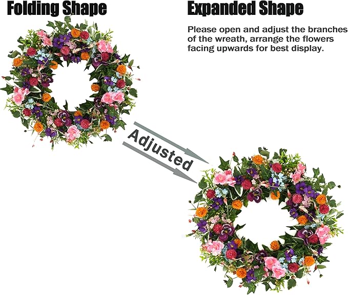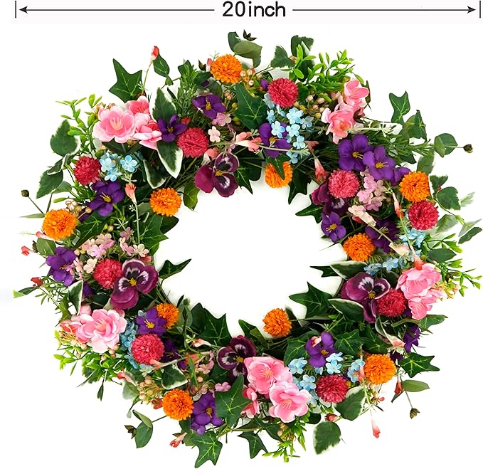 Spring Summer Wreaths for Front Door Pansy Wreath with Pink Cherry Blossoms,Small Ball Bhrysanthemum for Indoor Outdoor Farmhouse Home Porch Wall Window Festival Wedding Decor