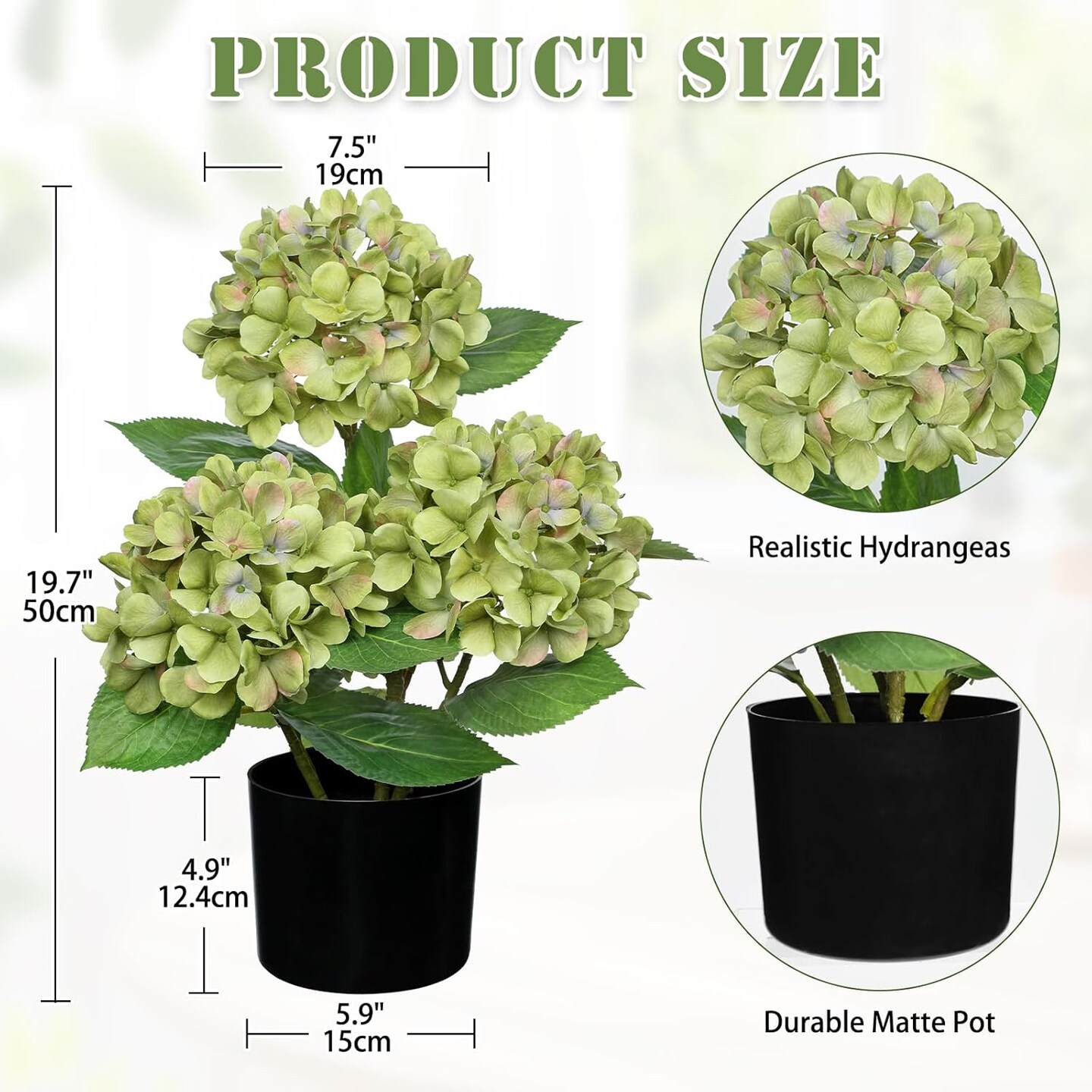 Spring Table Top Decor – 19.7" Green Artificial Flower Plant in Pot, Faux Silk Tree Arrangement for Home, Office, Bathroom & Table Centerpieces