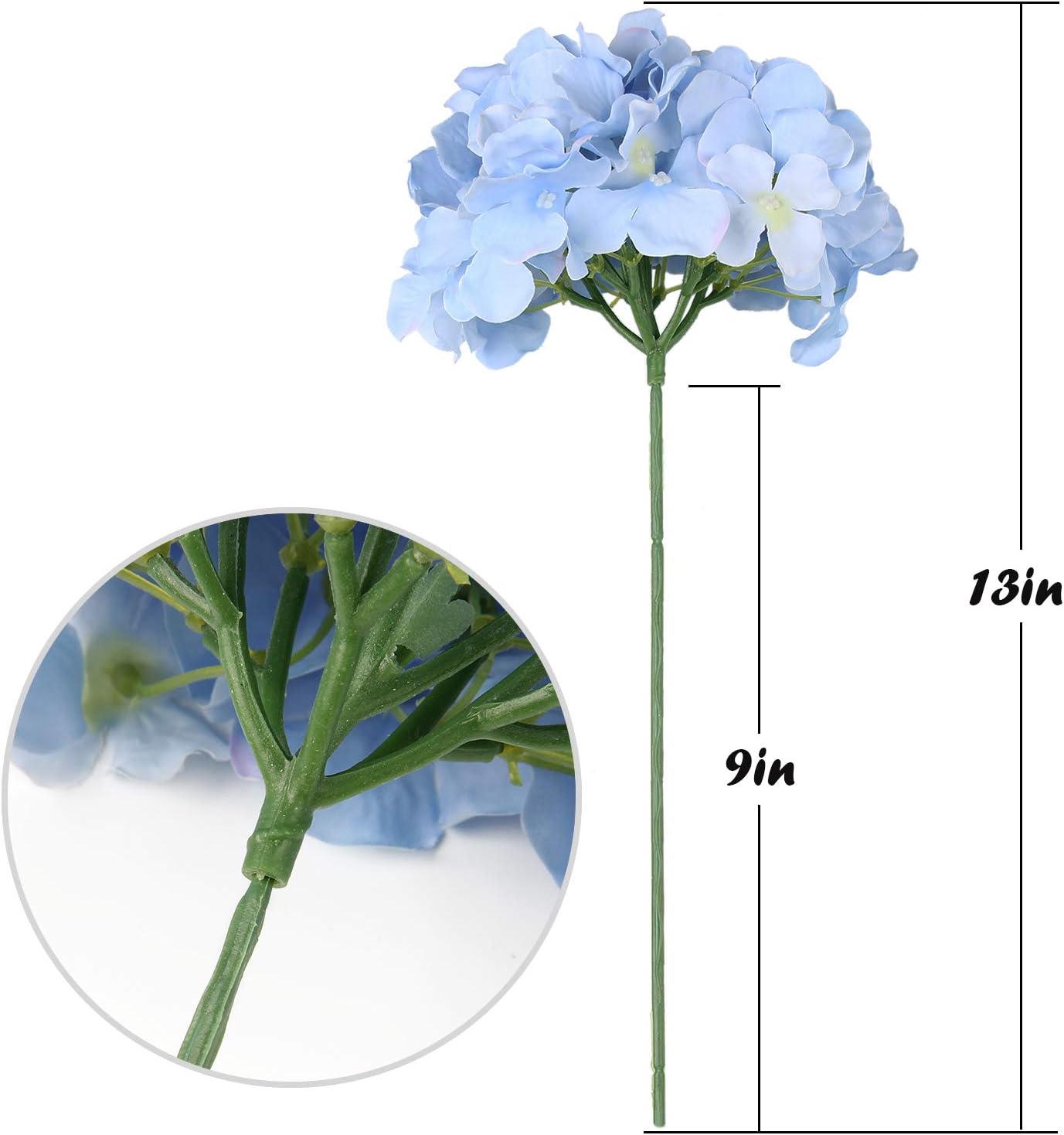 Spring Tabletop Decor – 10PCS Blue Silk Hydrangea Artificial Flower Heads with Stems for Home, Wedding & Party
