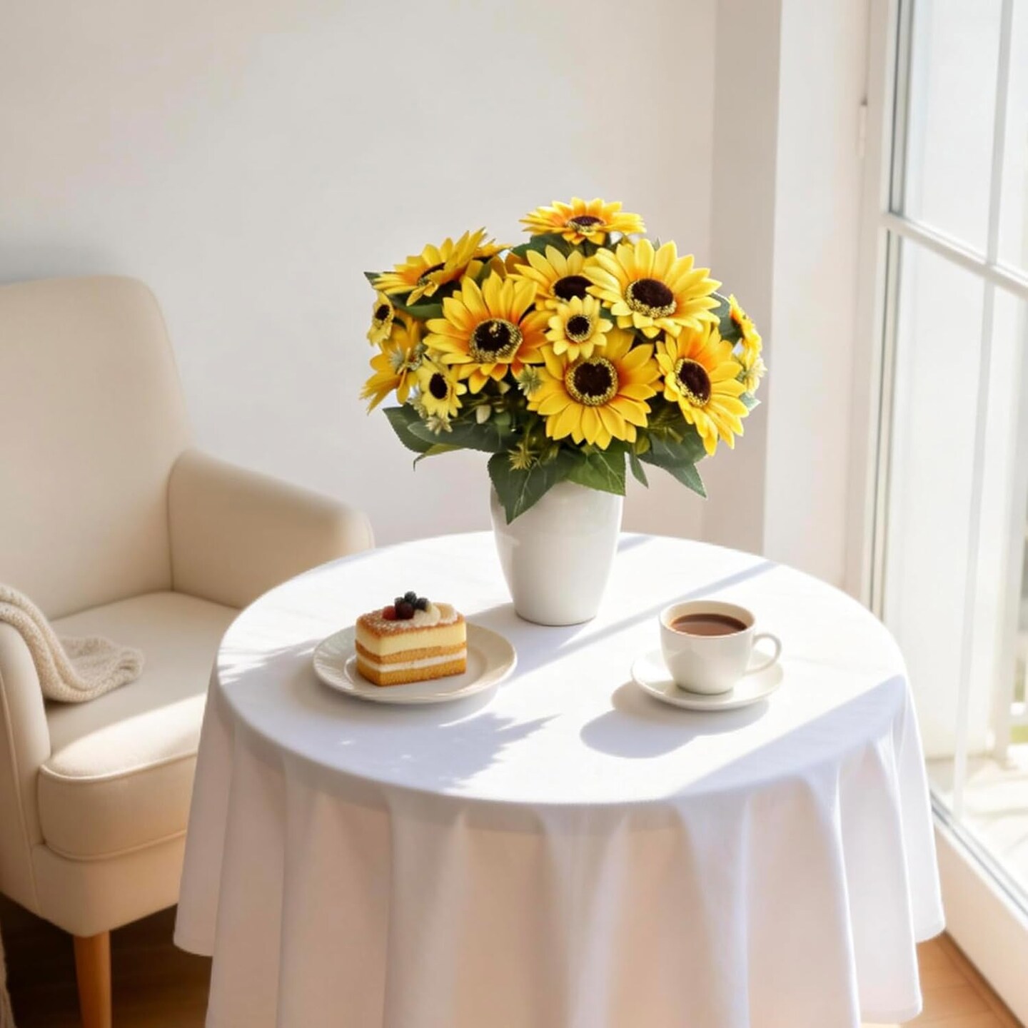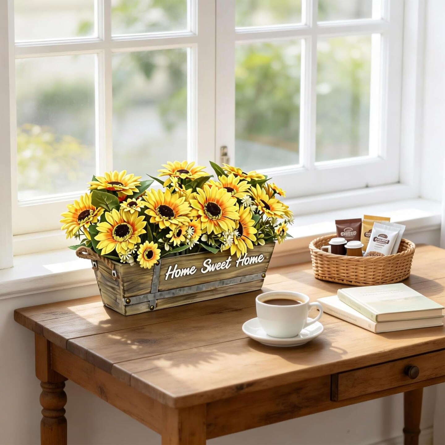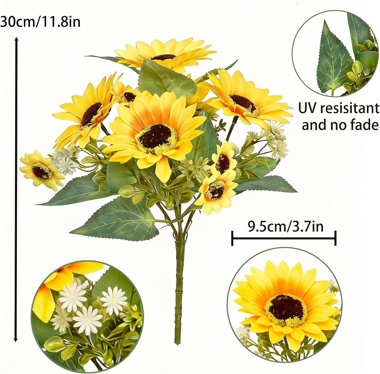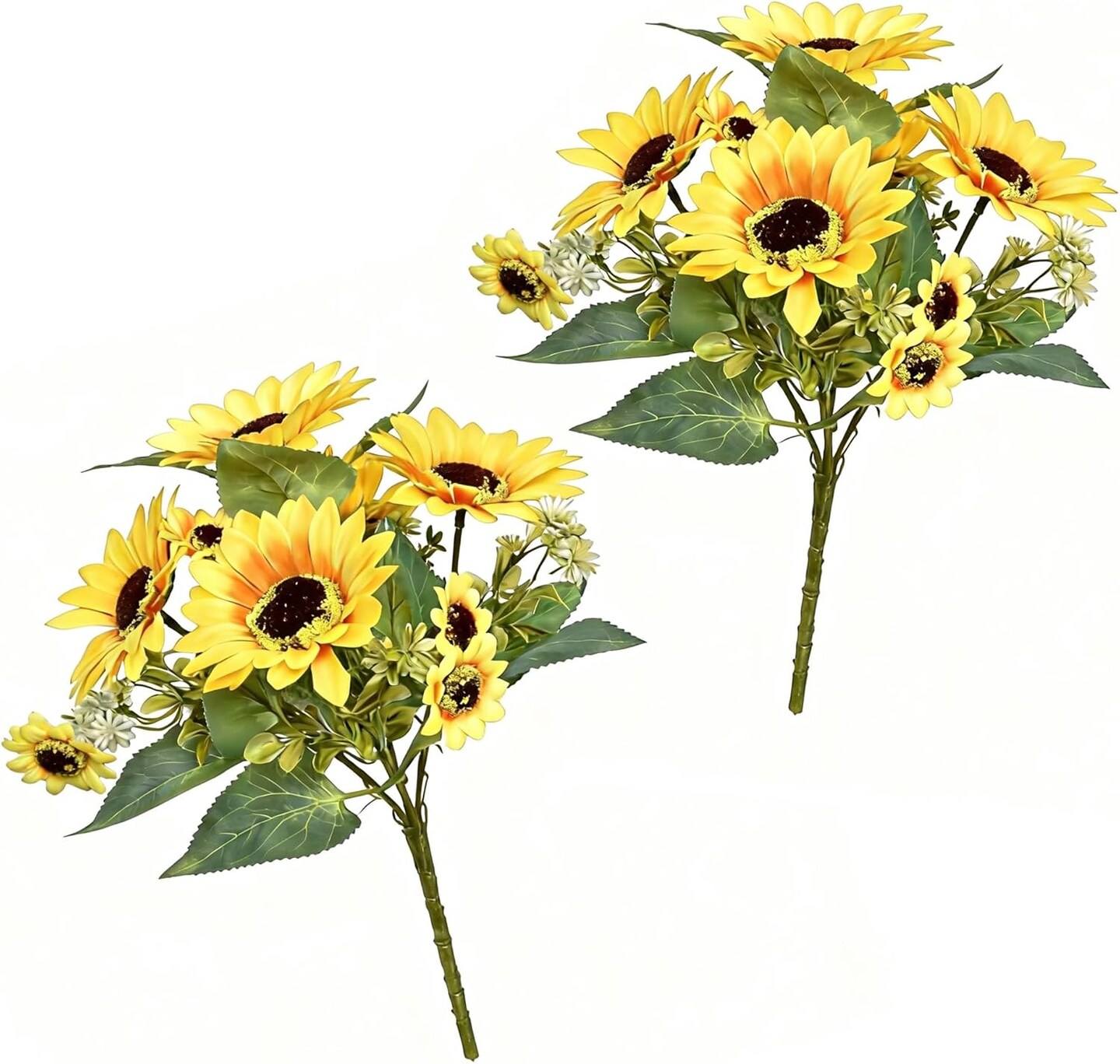 Spring Tabletop Decor – 2 Pack 12’’ Artificial Sunflower Bouquets with Daisies & Green Leaves, Faux Flowers for DIY Home, Office & Farmhouse Décor