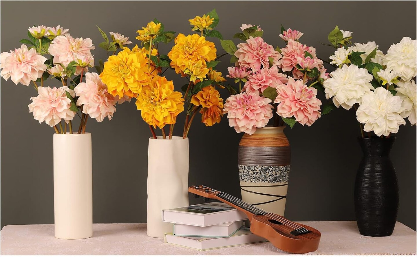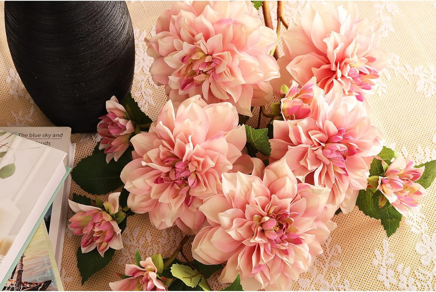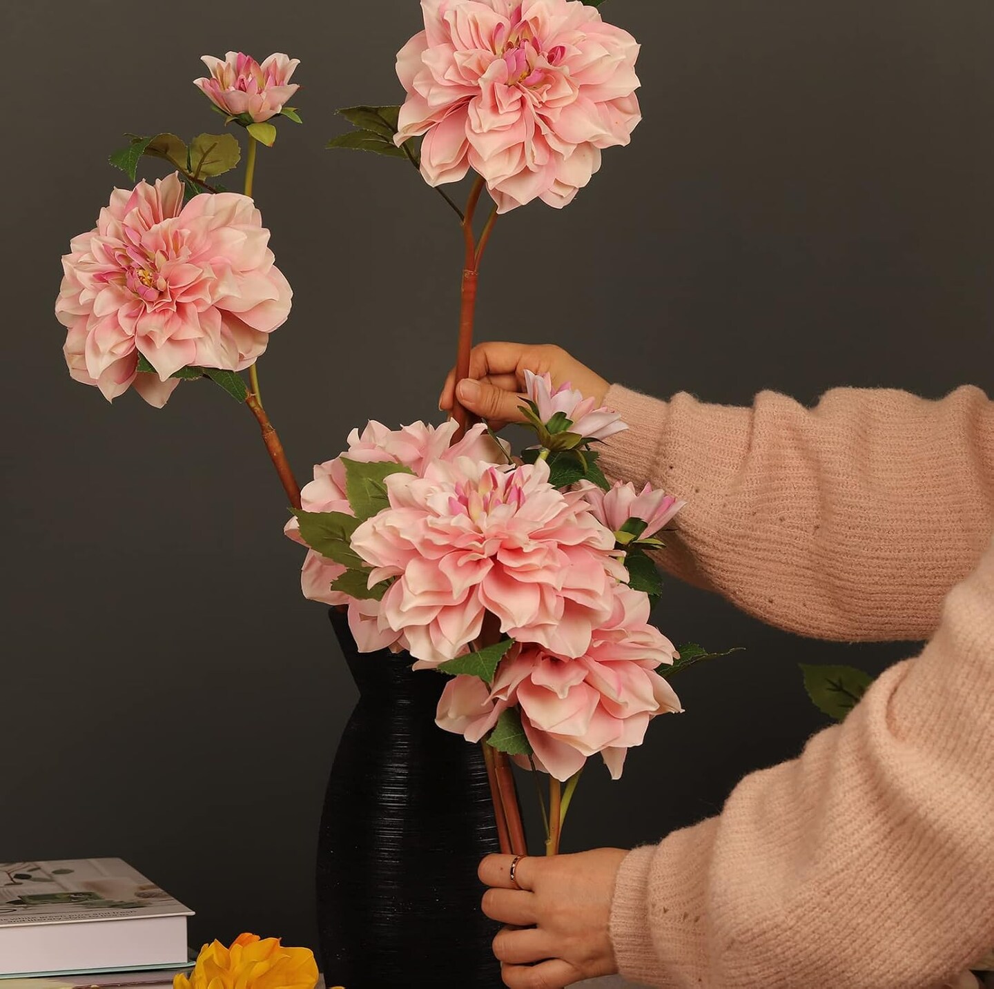 Spring Tabletop Decor – 5PCS Pink Silk Dahlia Artificial Flowers, 24" Long Faux Floral Stems for Wedding Bouquets, Home Decor & Table Centerpieces