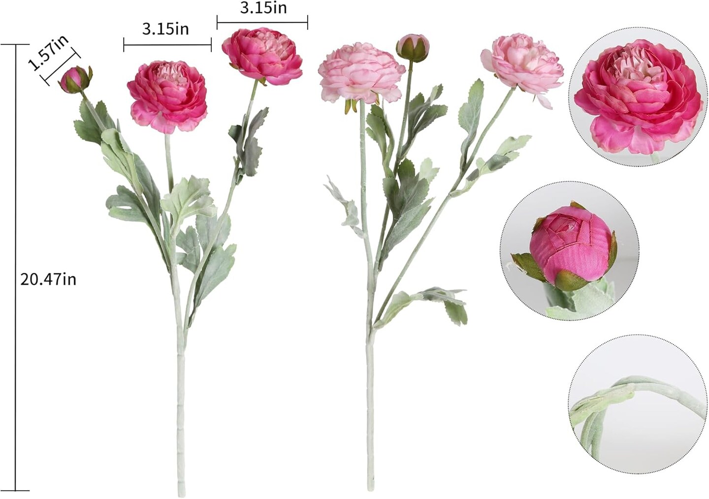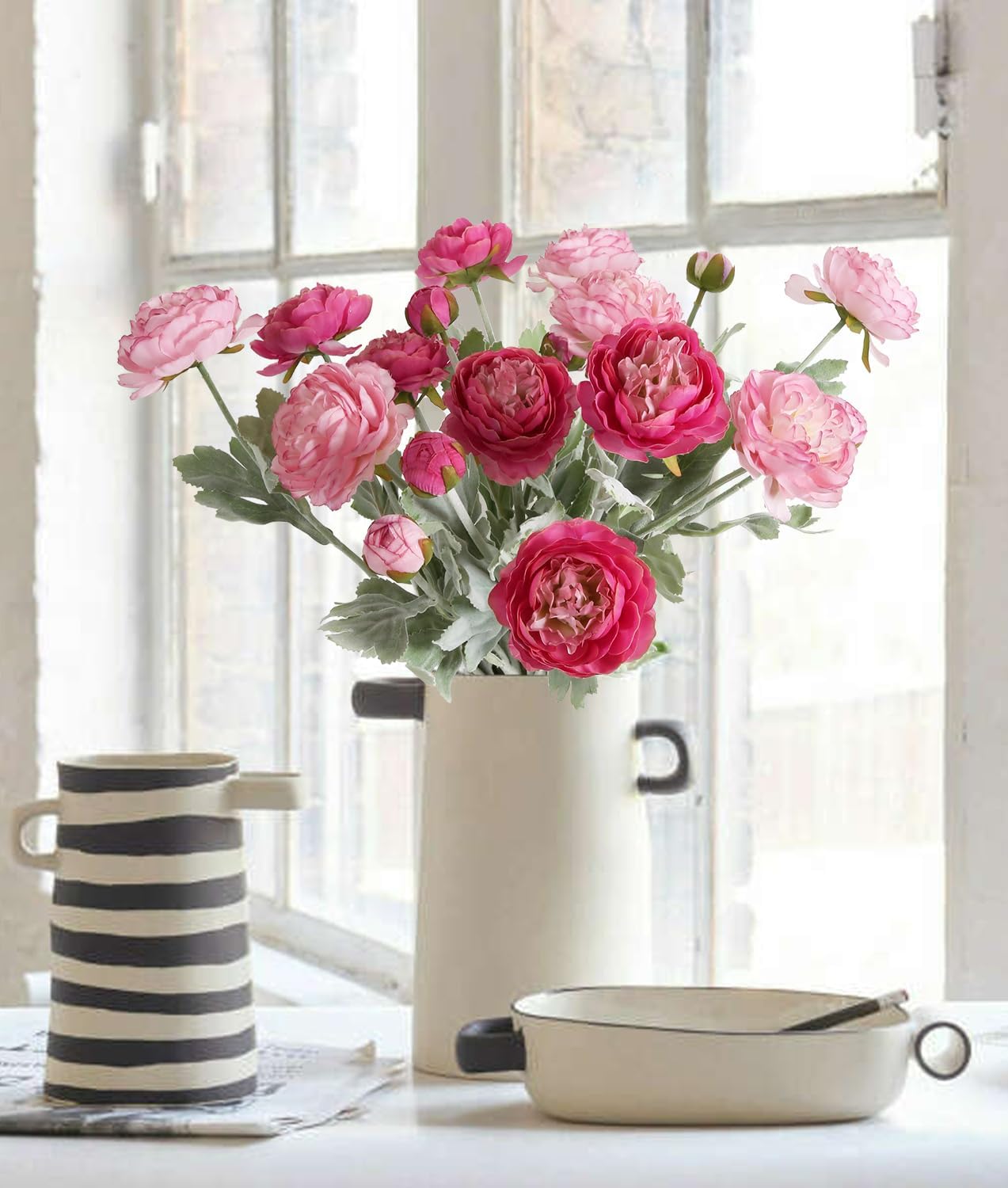 Spring Tabletop Decor – 6PCS Multi-Pink Silk Peonies & Ranunculus Artificial Flowers for Home, Wedding & Party Centerpieces