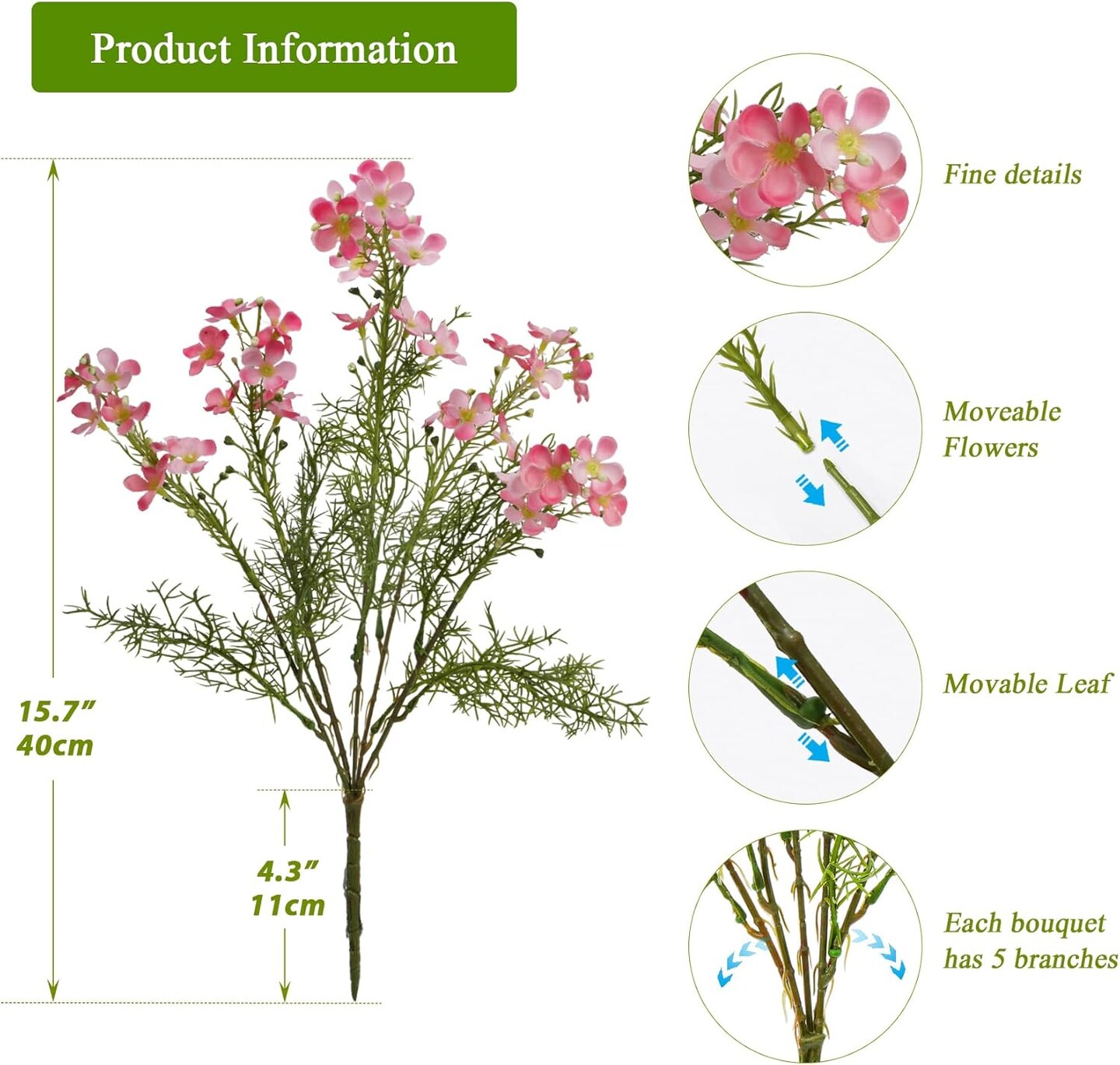 Spring Tabletop Decor – 6PCS Pink Artificial Hydrangea & Daisy Flowers for Home, Garden & Party Arrangements