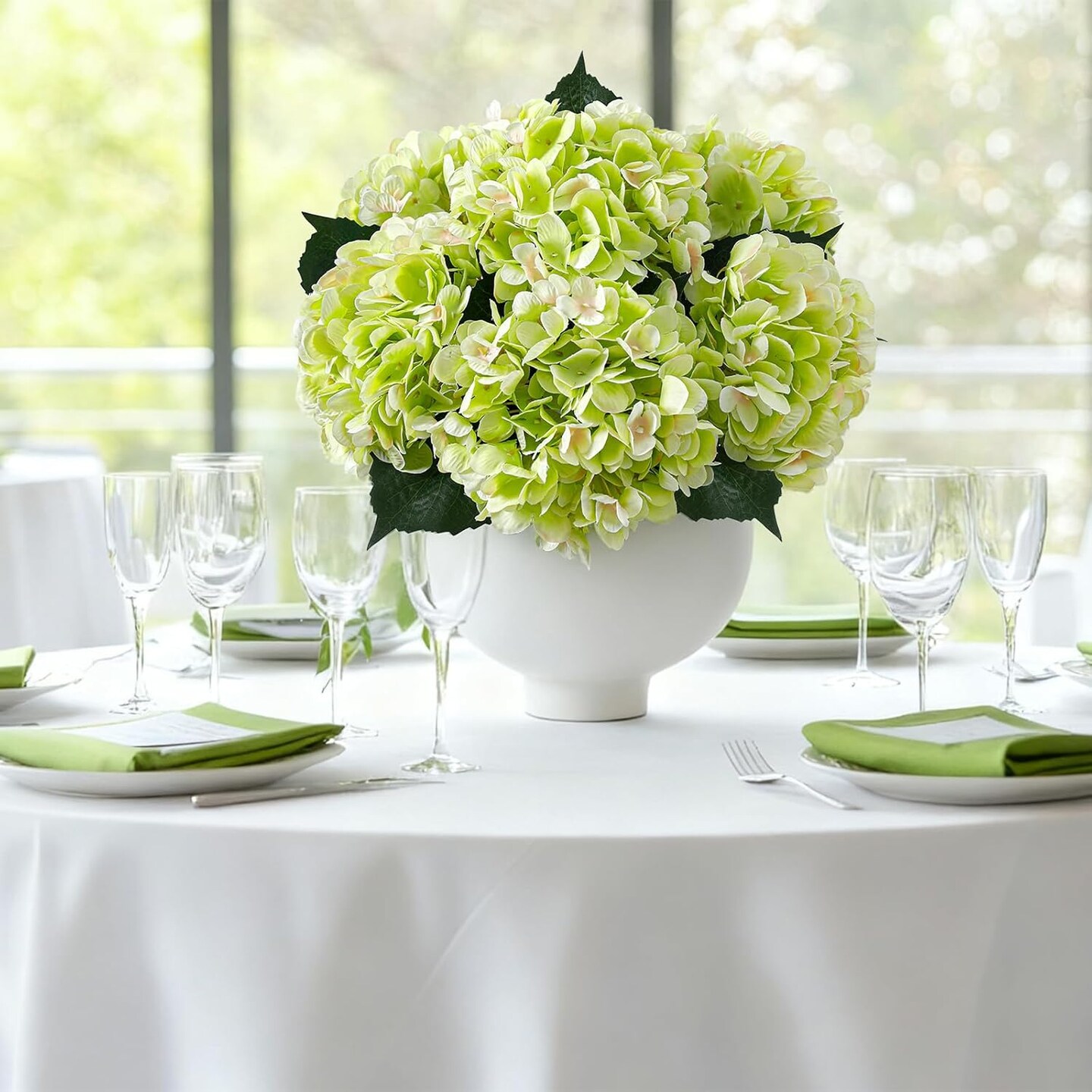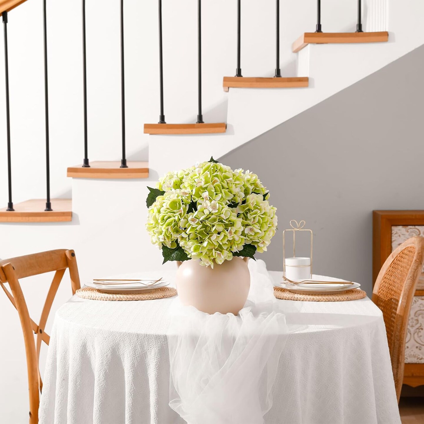 Spring Tabletop Decor – 6PCS Realistic Artificial Silk Hydrangea Flowers, Premium Fake Hydrangea Bouquets with Stems for Home, Wedding, Table, Party, Office Decor (Lig
