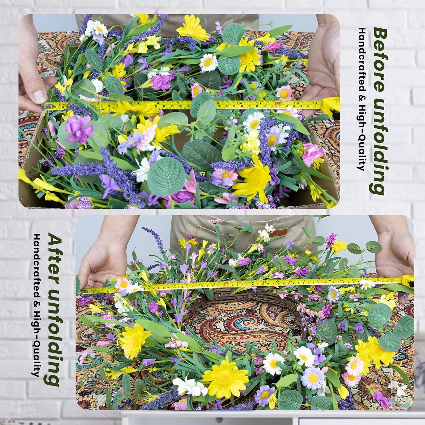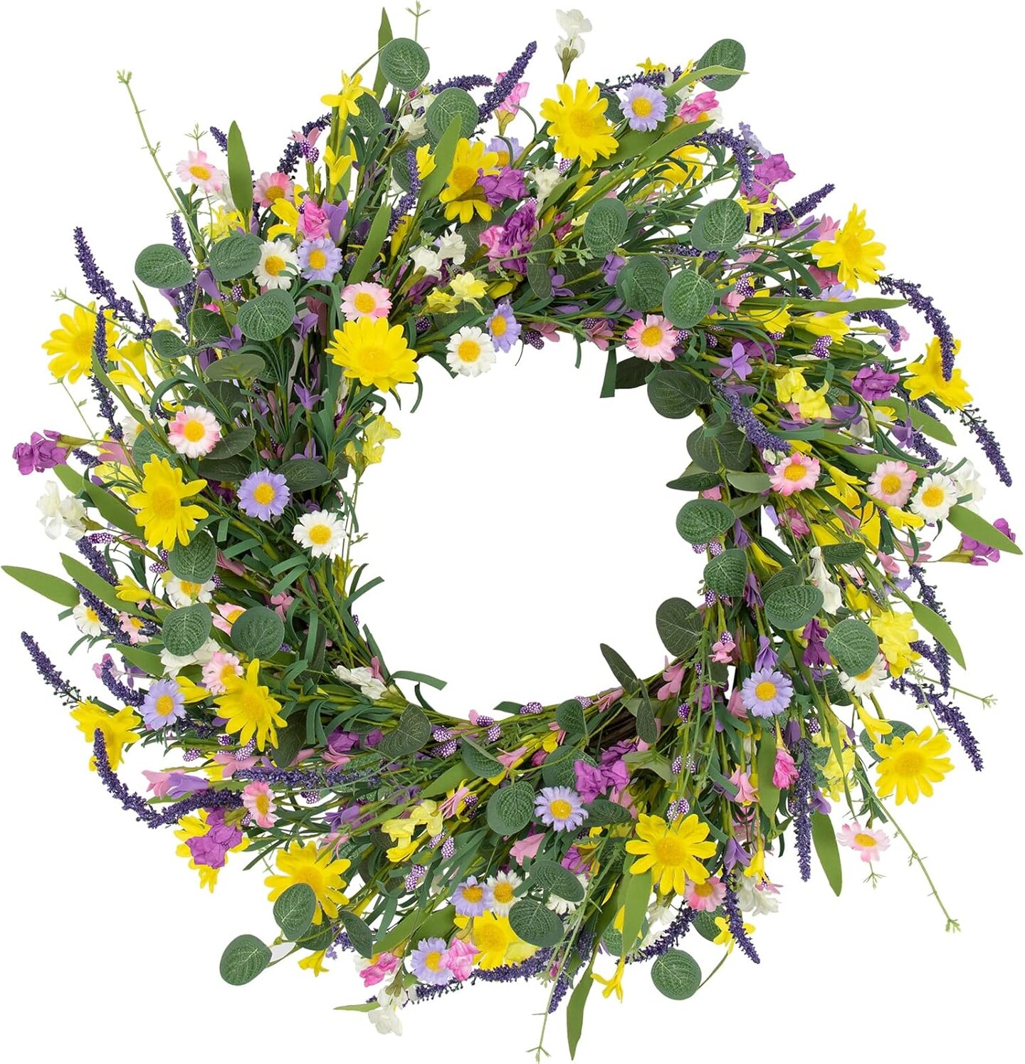 Spring Wreath 22" Spring Wreaths for Front Door Artificial Summer Wreath with Eucalyptus Leaf Lavender Daisy for Indoor Outdoor Home Decor Festival Celebrations