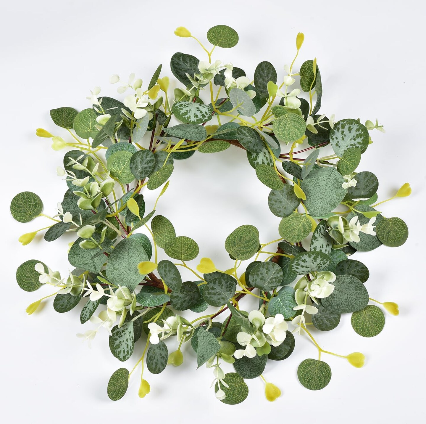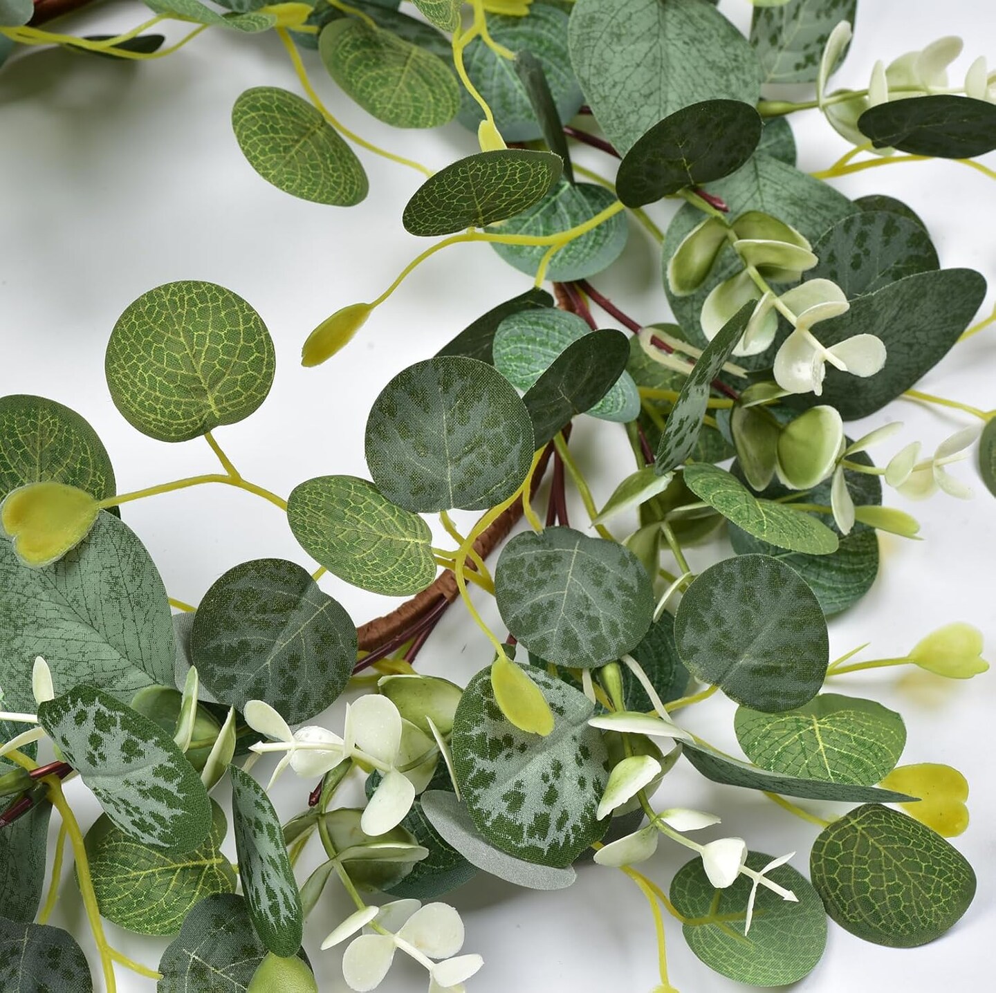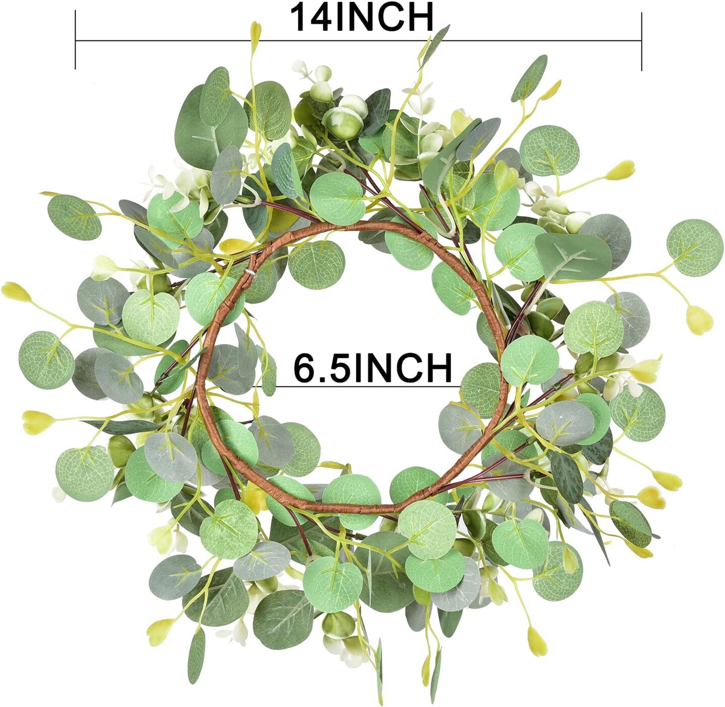 Spring Wreaths for Front Door, 14" Artificial Eucalyptus Wreath – Lifelike Green Leaf Wreath for Indoor & Outdoor Farmhouse, Wall, Door, Kitchen & Seasonal Décor