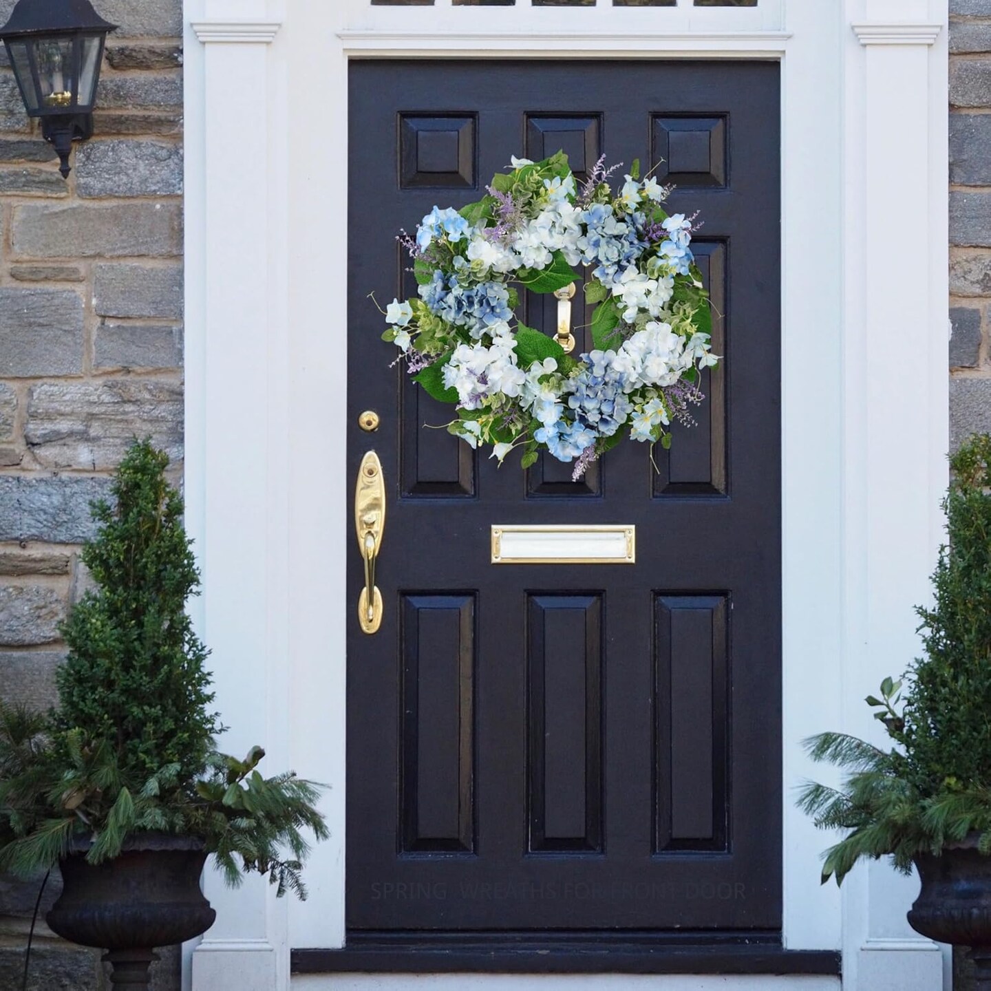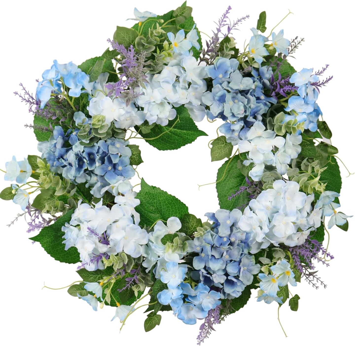 Spring Wreaths for Front Door, 20" Artificial Hydrangea Eucalyptus Wreath with Lavender – Light Blue, White & Green Spring Easter Summer Floral Door & Wall Décor