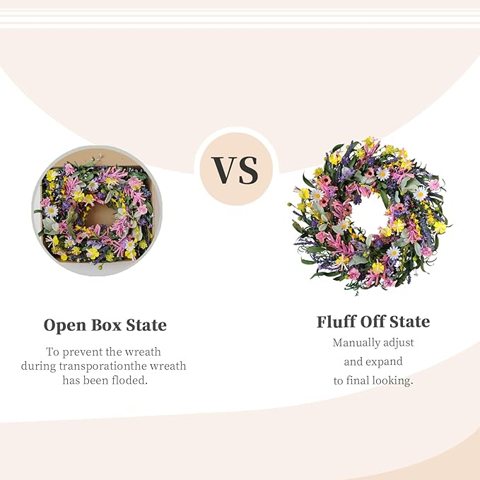 Spring Wreaths for Front Door, 22 Inch Artificial Floral Wreath for Decoration with Daisy Lavender, Wildflower Wreaths for Indoor Outdoor Home Windows Wall Farmhouse Wedding Decor