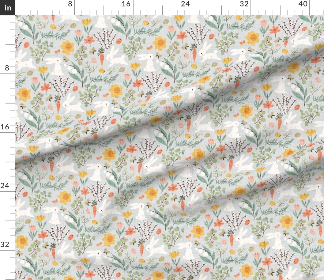 Springtime Garden Nature Easter Floral Bunny Farm Carrots Flowers Vegetables Veggie Easter Egg Eggs Pastel Spring Modern Farmhouse Rustic Custom Printed Fabric by Spoonflower Various Fabrics by the Yard or Fat Quarter