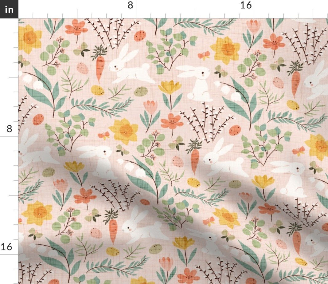 Springtime Garden Nature Easter Floral Bunny Farm Carrots Flowers Vegetables Veggie Easter Egg Eggs Pastel Spring Modern Farmhouse Rustic Custom Printed Fabric by Spoonflower Various Fabrics by the Yard or Fat Quarter