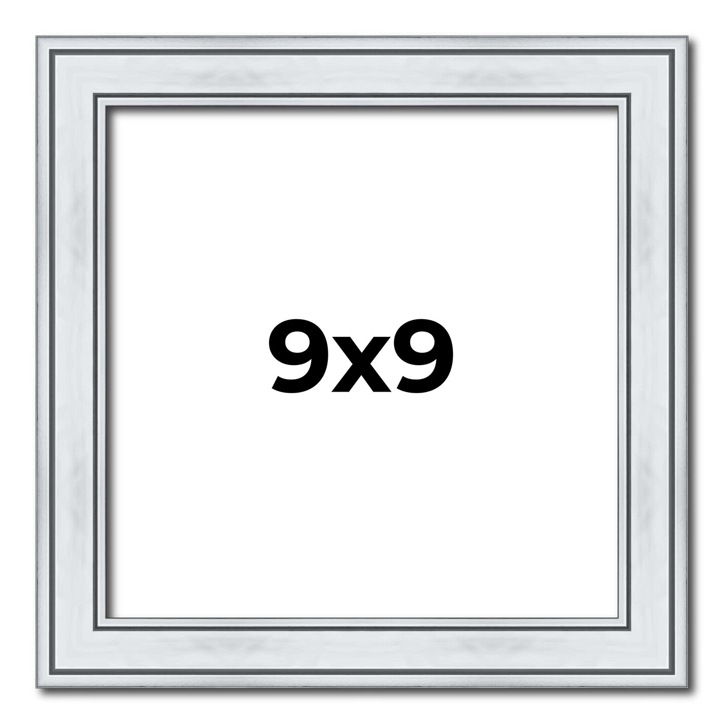 Square Classic Silver Picture Frame - UV Acrylic, Foam Board Backing, Hanging Hardware