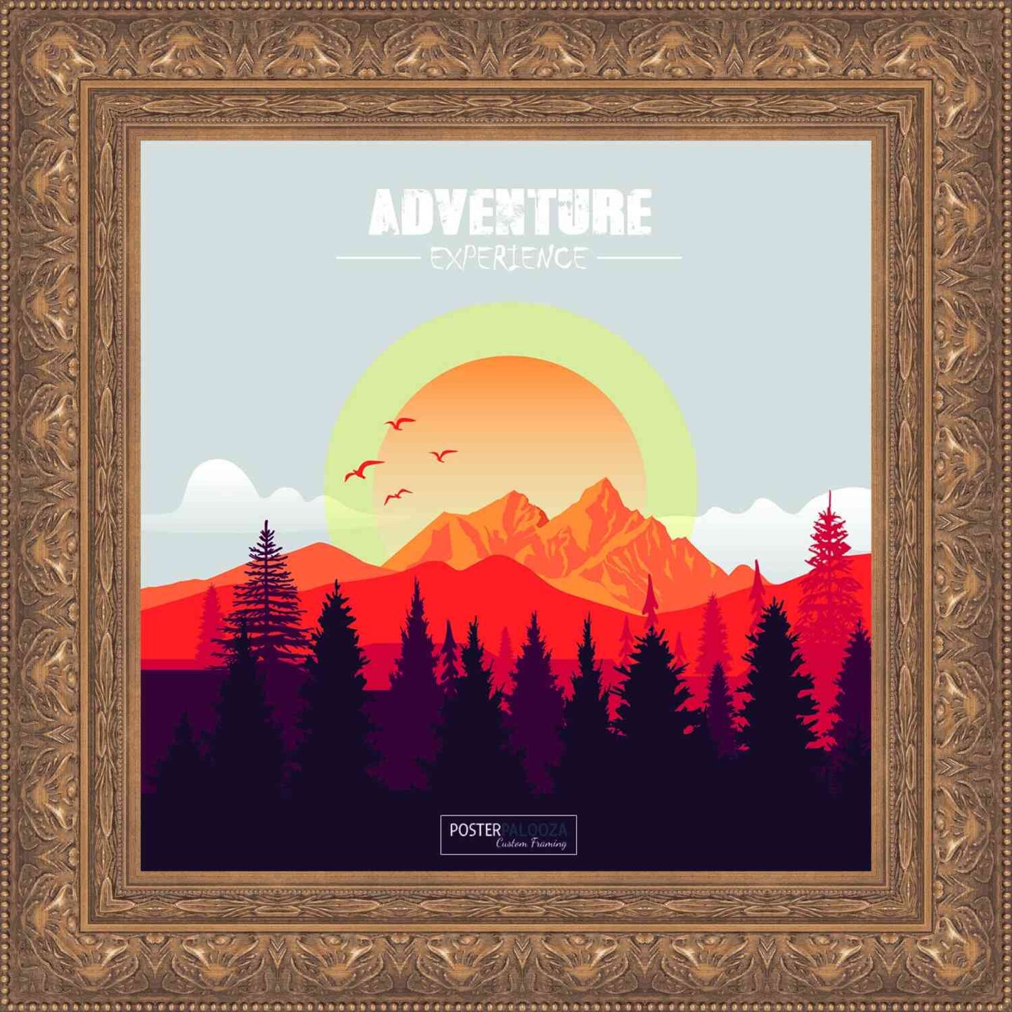 Square Museum Gold Picture Frame - UV Acrylic, Foam Board Backing, Hanging Hardware