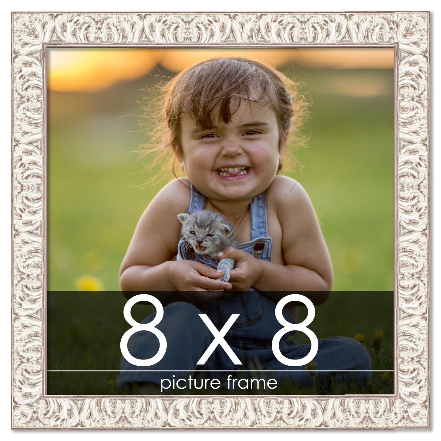 Square Refined White Picture Frame - UV Acrylic, Foam Board Backing, Hanging Hardware