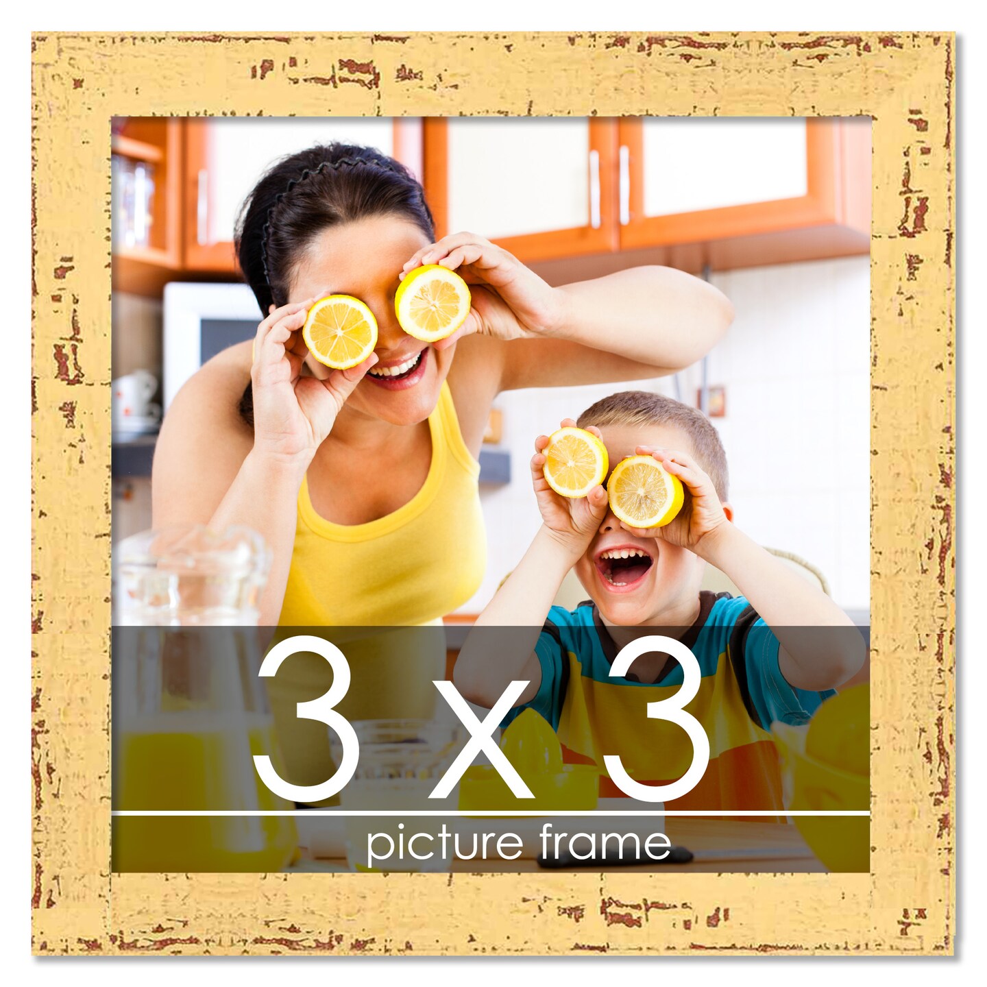 Square Shabby Chic Yellow Picture Frame - UV Acrylic, Foam Board Backing, Hanging Hardware