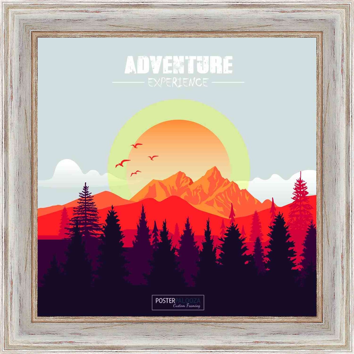 Square Weathered White Picture Frame - UV Acrylic, Foam Board Backing, Hanging Hardware