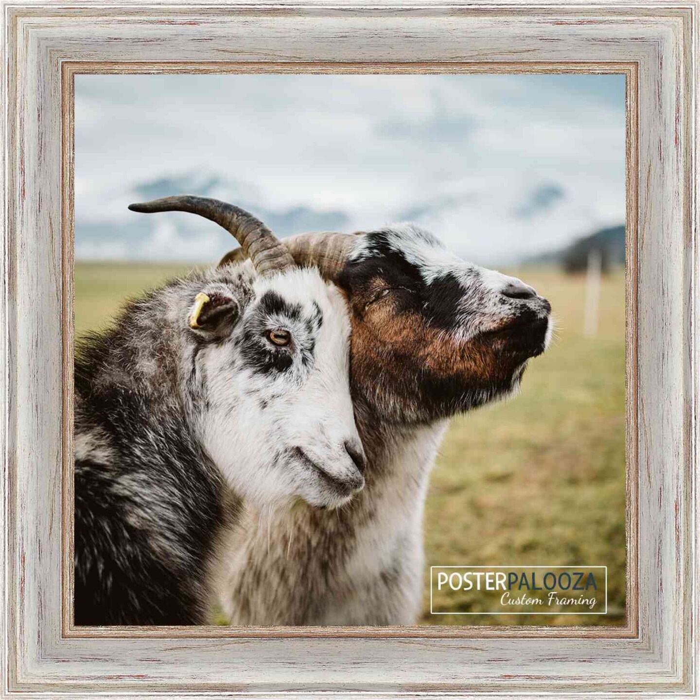 Square Weathered White Picture Frame - UV Acrylic, Foam Board Backing, Hanging Hardware