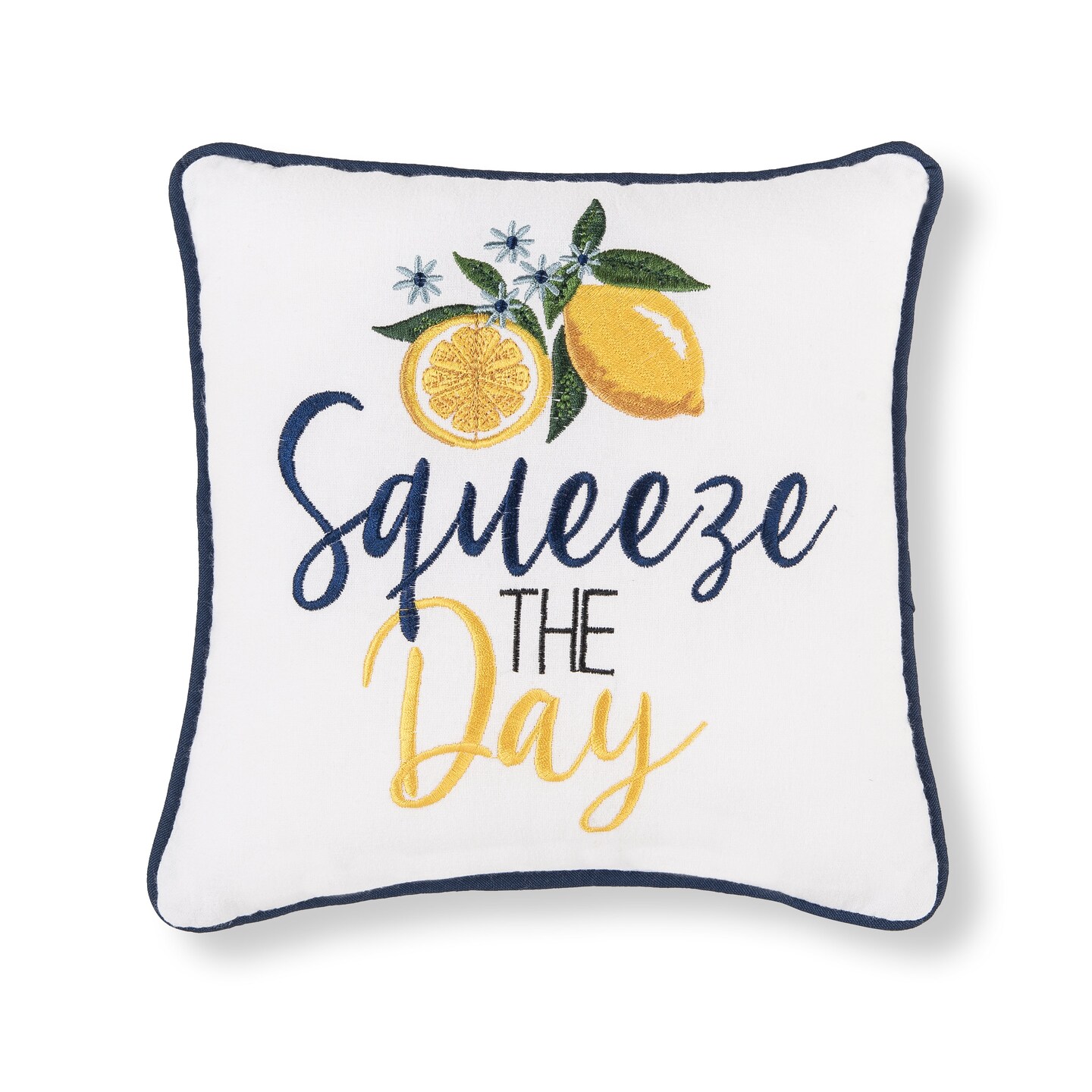 "Squeeze The Day" Lemon Fruit Cotton Blend Mini Accent Pillow 10" x 10"