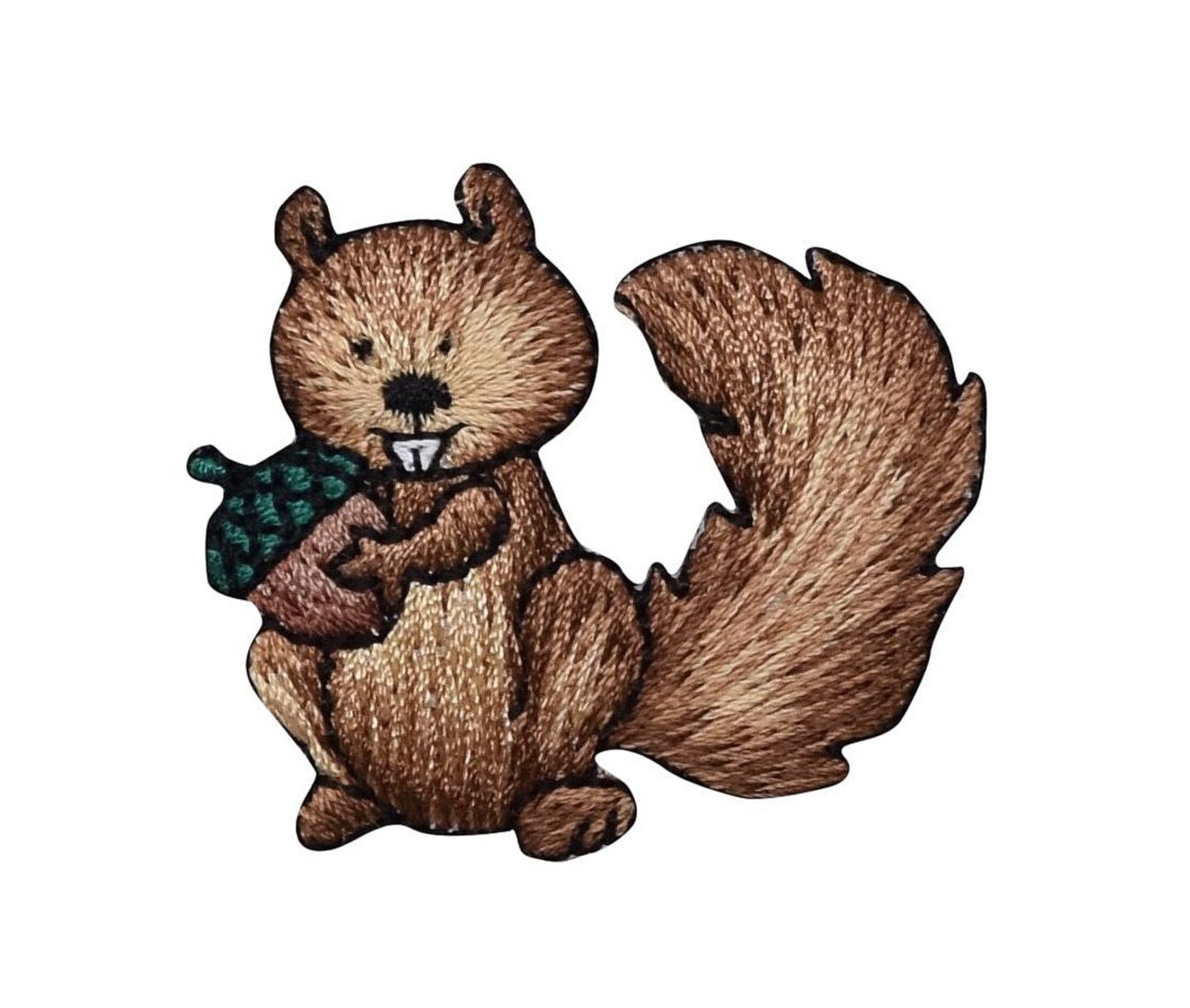 Squirrel with Acorn, Embroidered, Iron on Patch