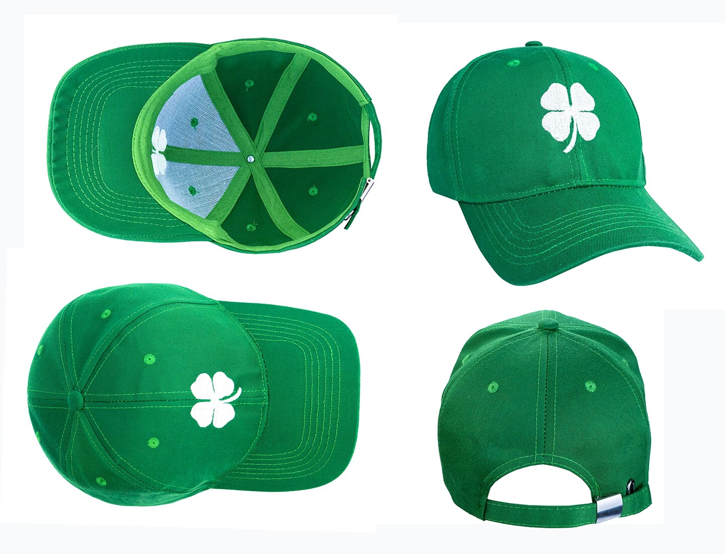 St. Patrick's Day 4 Leaf Clover Baseball Hat Adjustable Embroidery Shamrock Baseball Cap for Men and Women