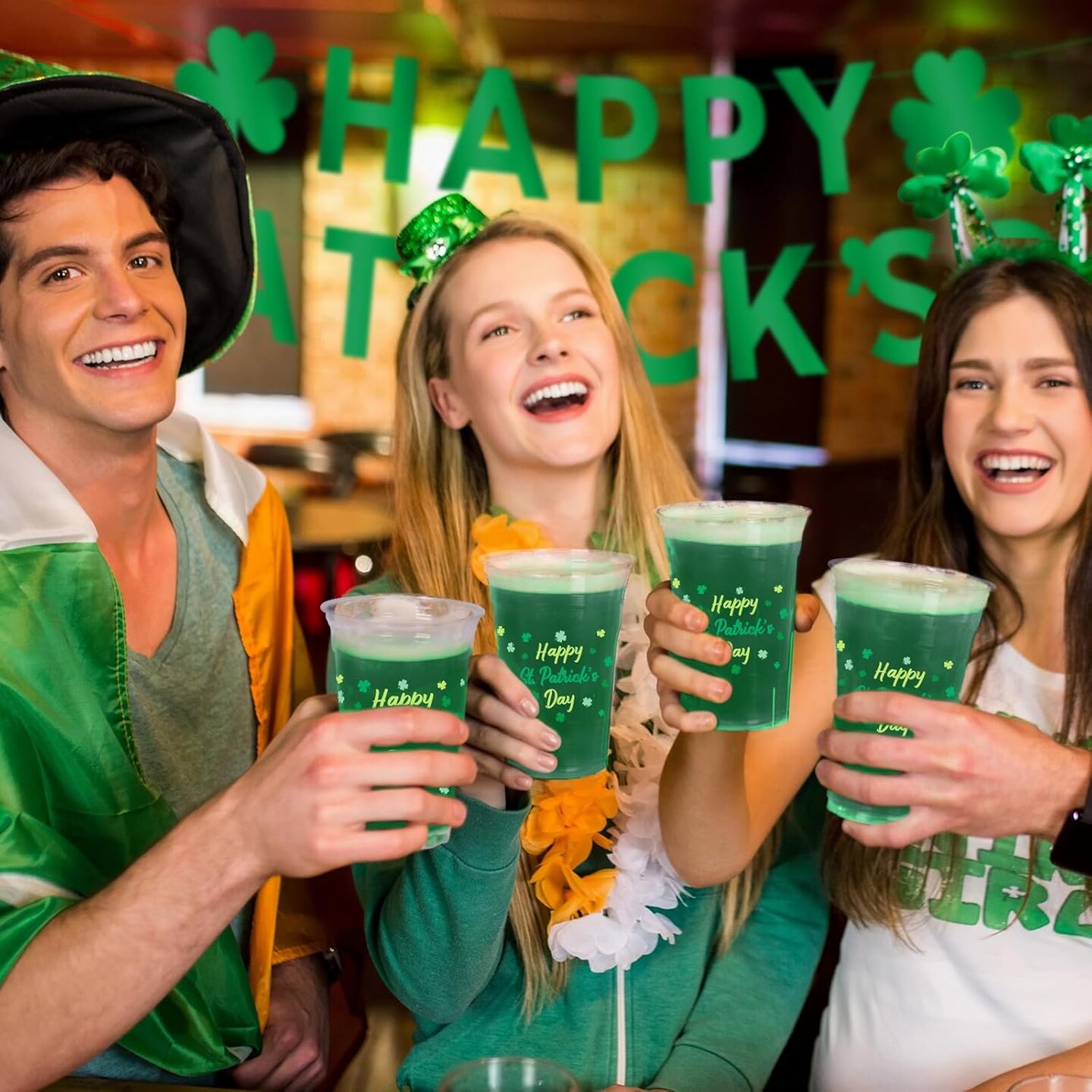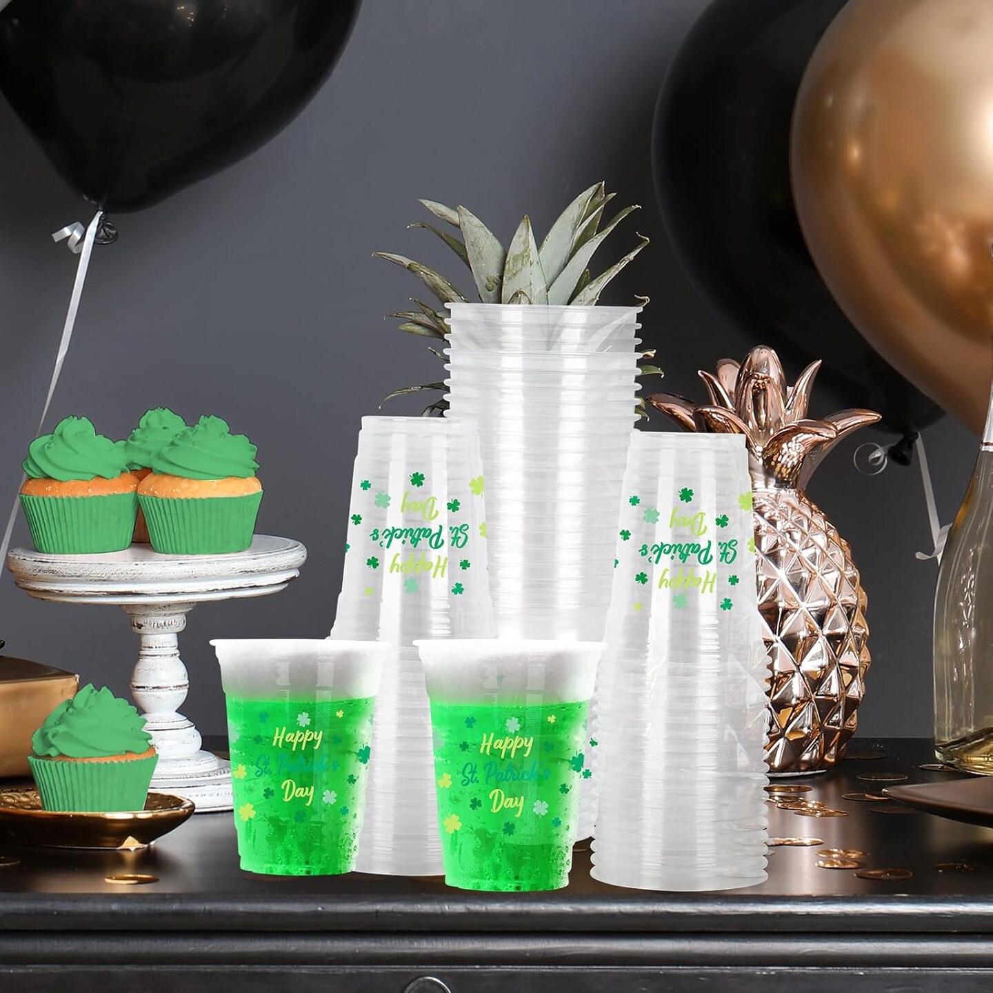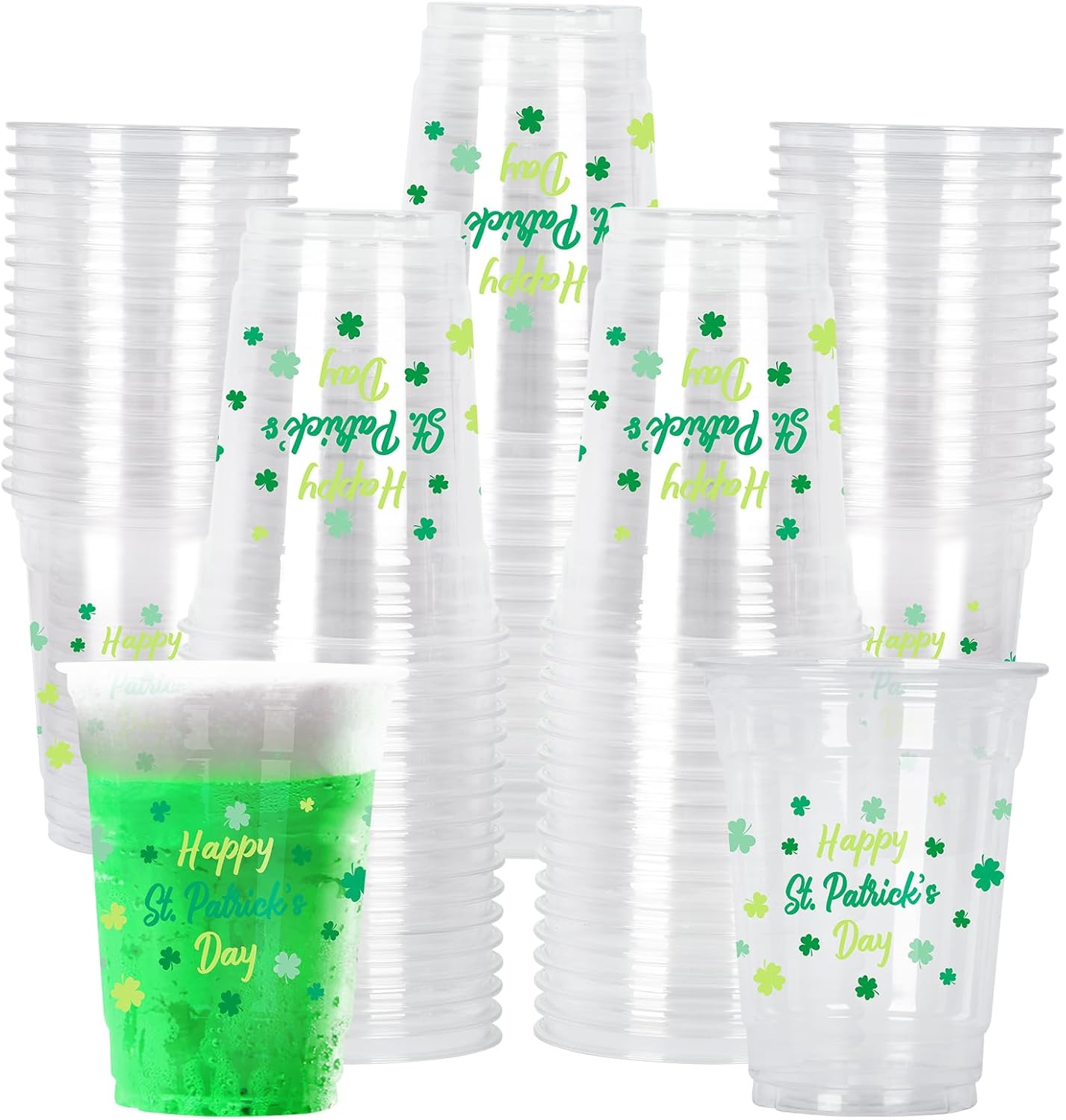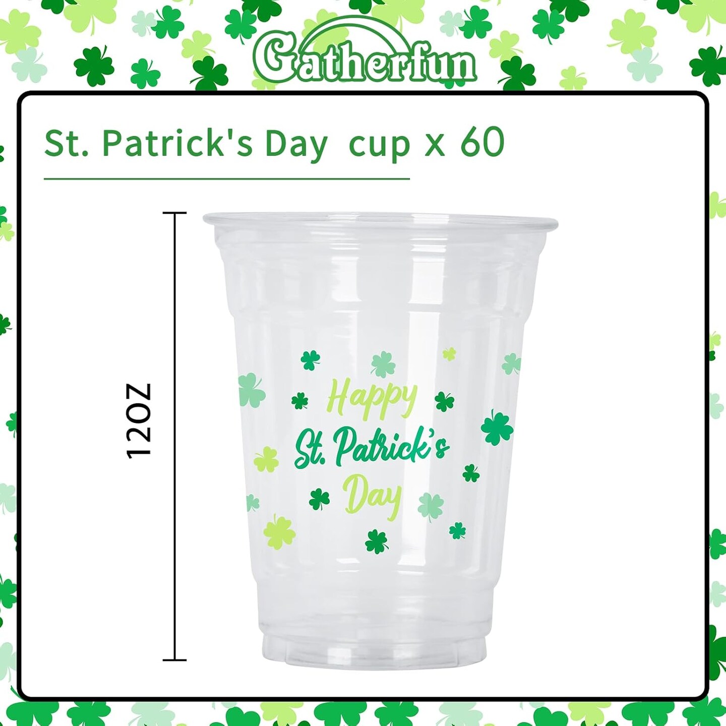St. Patrick's Day Celebration Pack - 60 Pcs 12oz Irish Themed Plastic Cups with Lucky Shamrock Design, Disposable for Easy Clean-Up, Ideal for Party Supplies & Favors,Irish