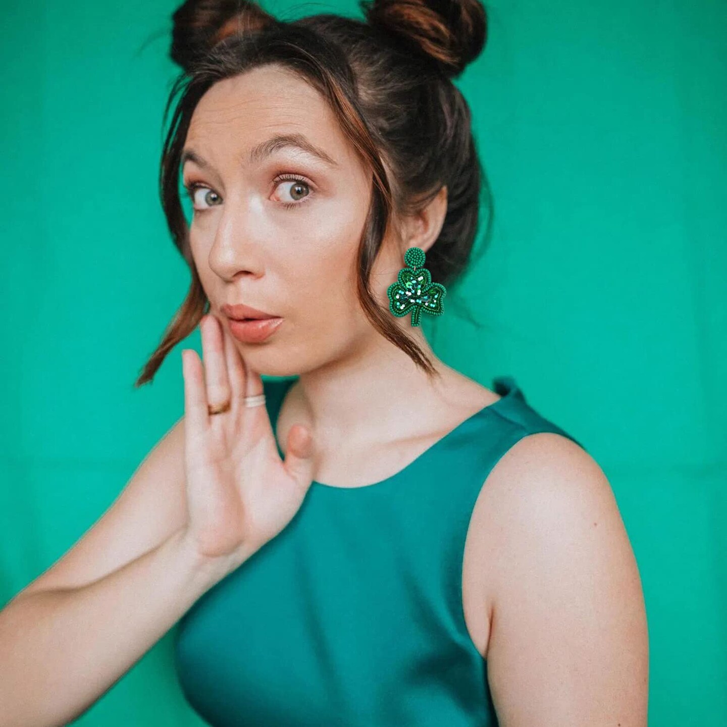 St. Patrick's Day Earrings Beaded Green Leaf Earring for Women Handmade Lucky Shamrock Hat Drop Dangle Earrings Irish Holiday Jewelry Gift (Leaf)