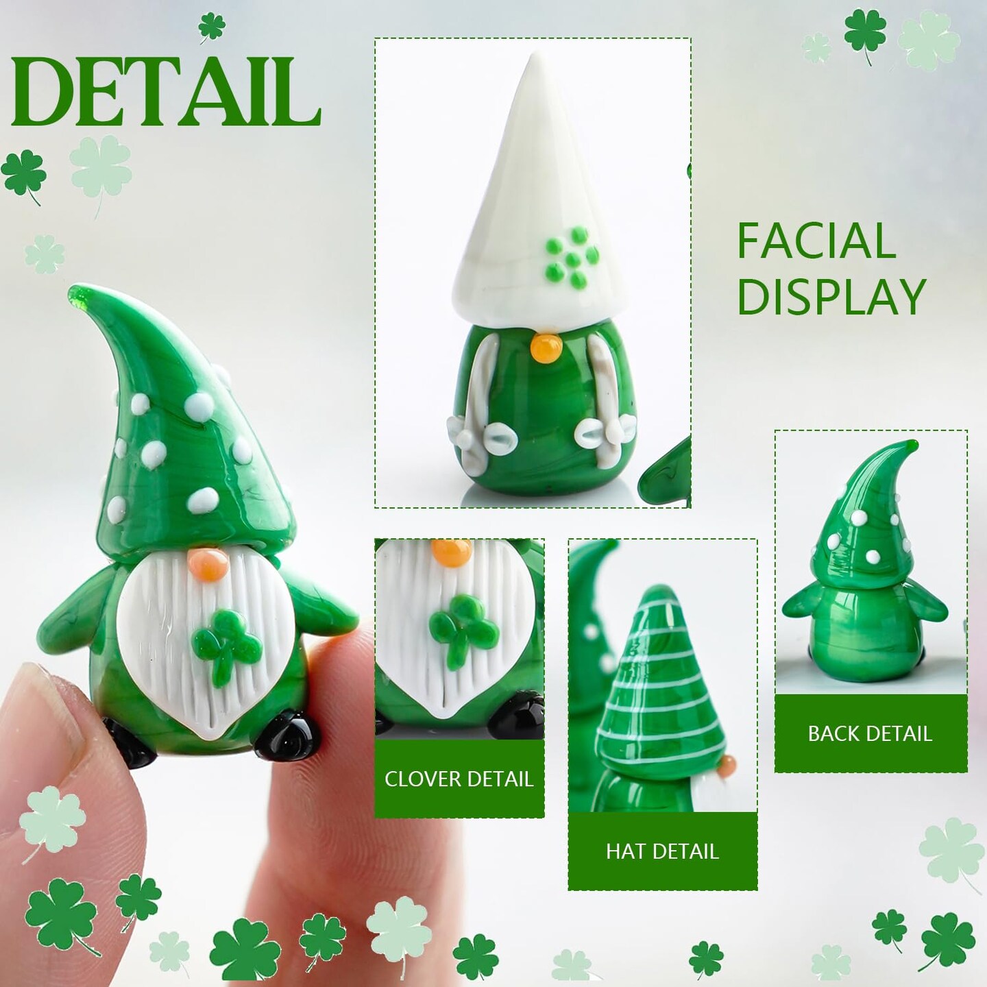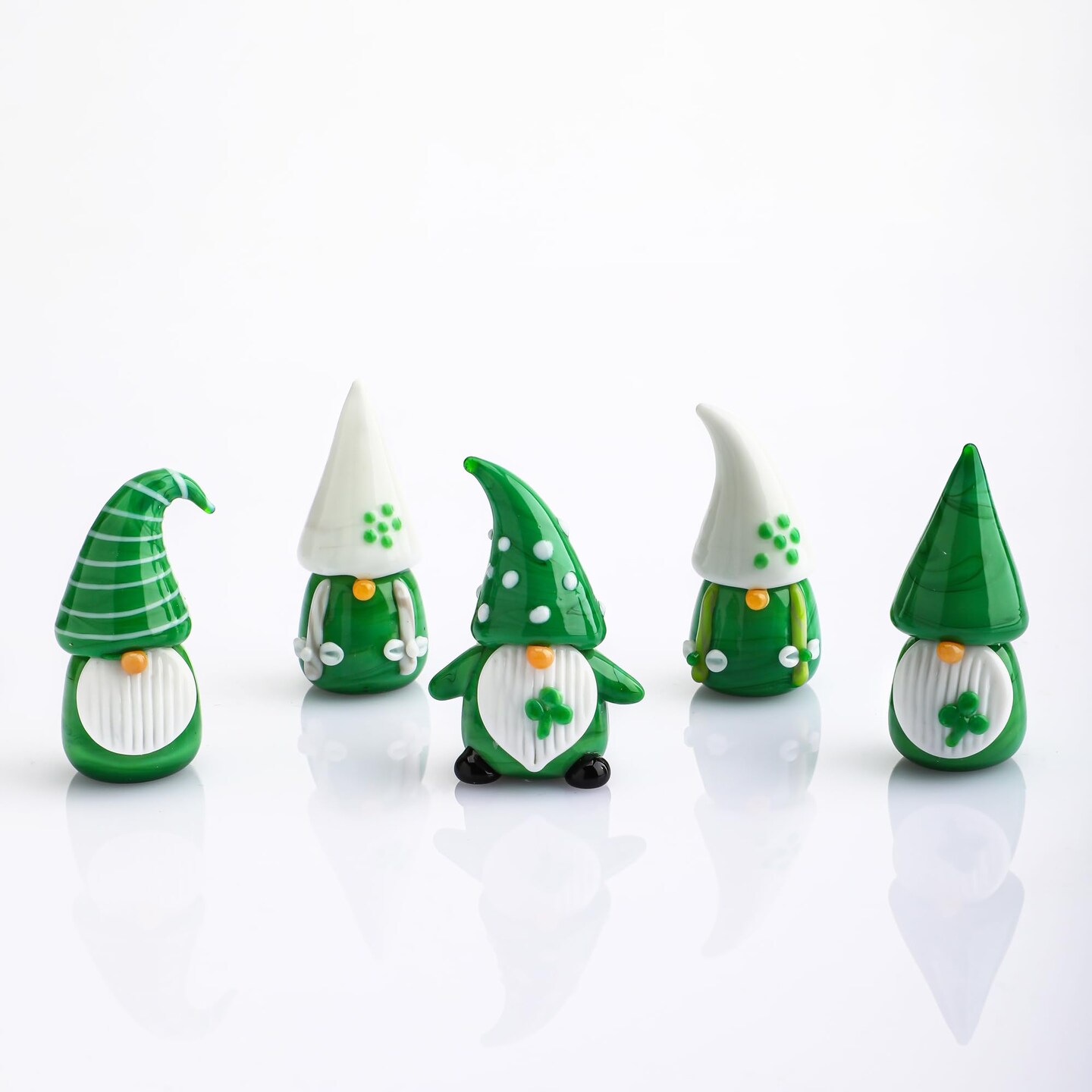 St Patrick's Day Gnomes Decorations 5Pcs Mini Blown Glass Gnomes Figurines Irish Green Clover Gnomes Figurines for Home Table, St Patrick's Day Ornaments