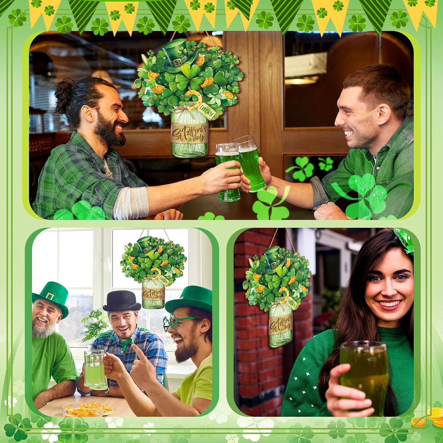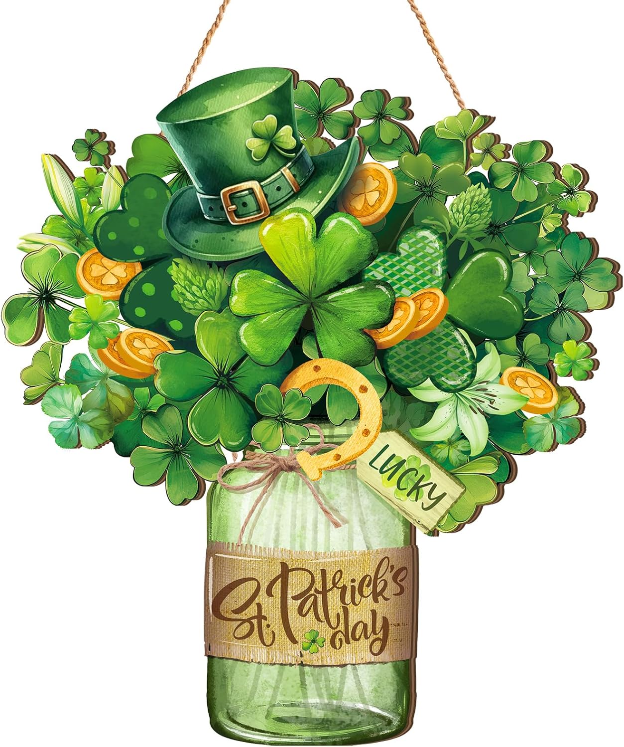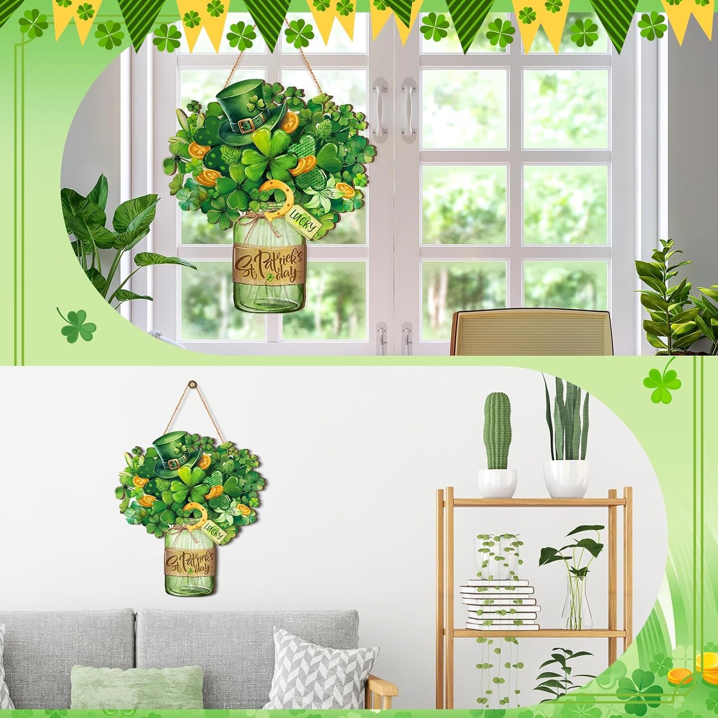 St. Patrick's Day Welcome Sign Wooden Hanging Decor Farmhouse Rustic Door Decoration St. Patrick's Day Wreath Sign with Bow Ornament for Holiday Irish Home Indoor Outdoor Farmhouse Window