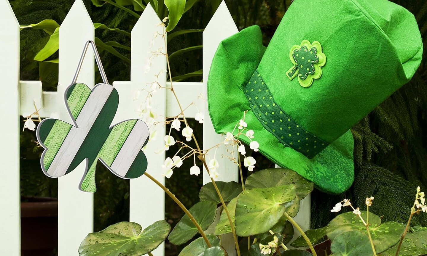St Patrick Day Wooden Hanging Wreath Decoration Shamrock Hanging Sign Wood for Irish Party Saint Patrick Day Home Décor