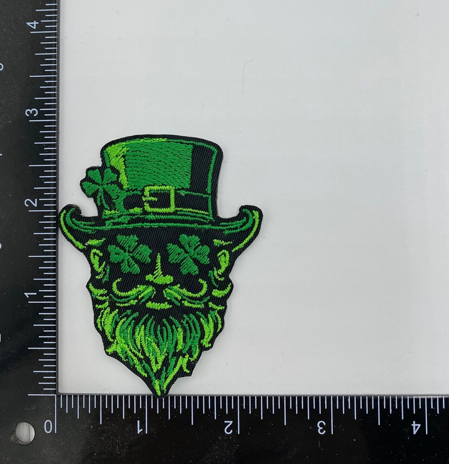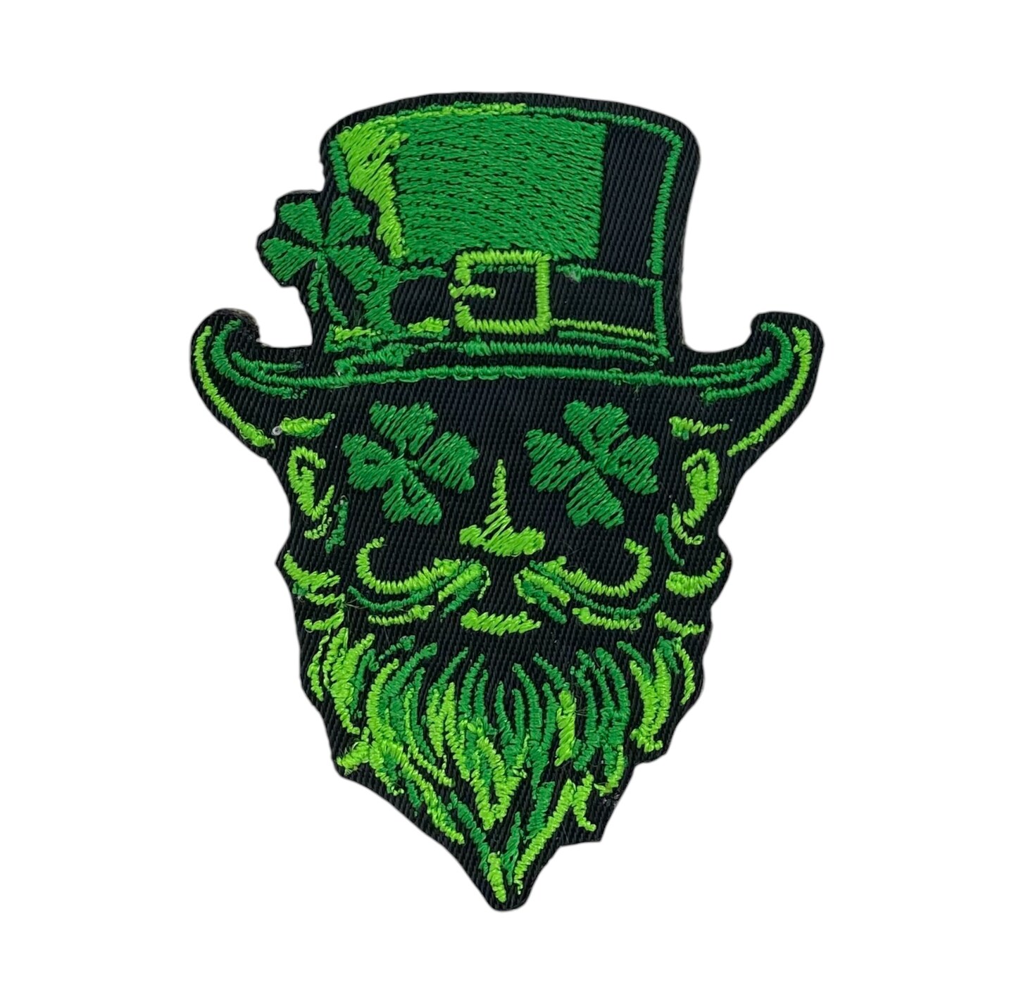 St. Patrick’s Day Bearded Leprechaun Face Embroidered Iron-On Patch, Green and Black, 2.88 inch x 2.25 inch